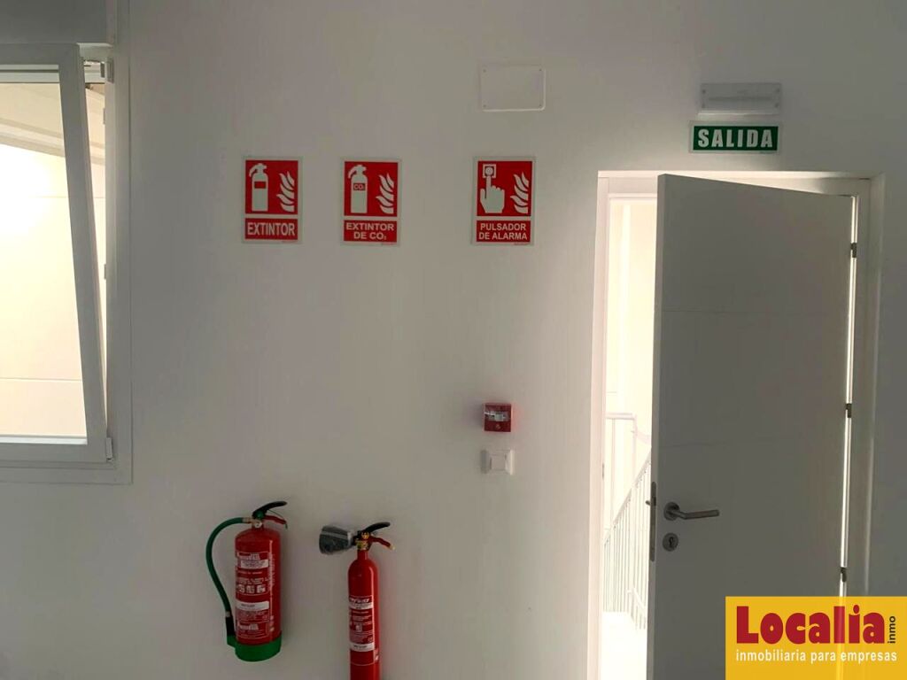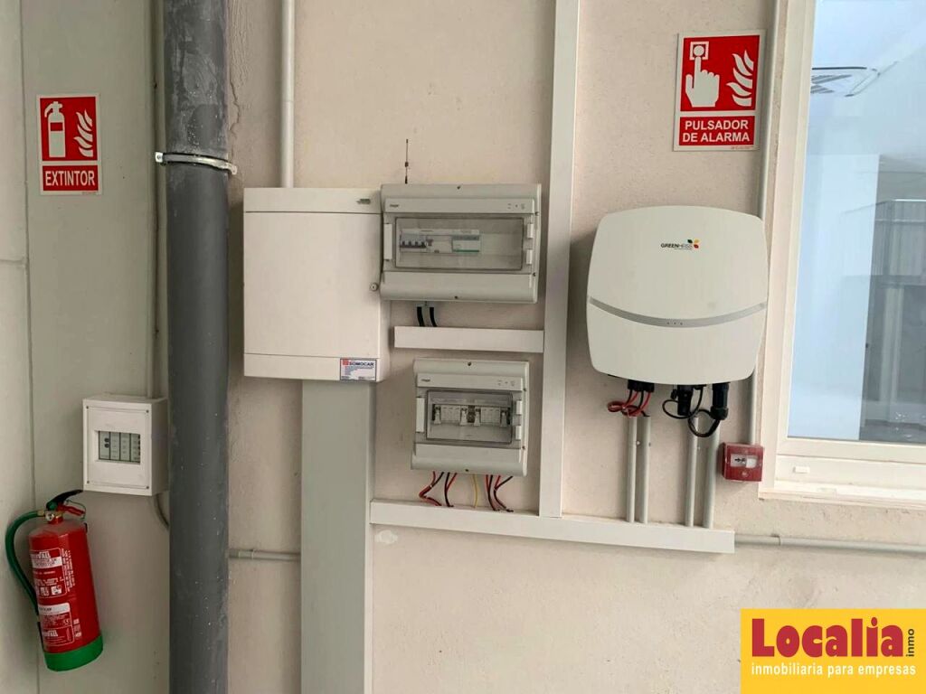 La nave está equipada con diversas medidas de seguridad, incluyendo extintores contra incendios y un pulsador de alarma, así como paredes ignífugas para garantizar la protección de sus instalaciones. Además, cuenta con una puerta automatizada que facilita la entrada y salida de camiones y vehículos de gran porte, lo que la convierte en una opción ideal para actividades logísticas y de almacenamiento.