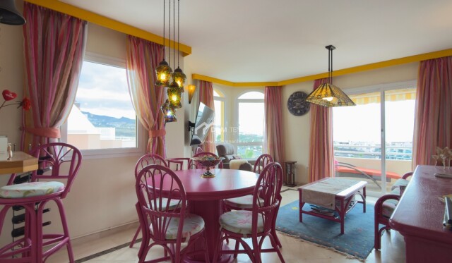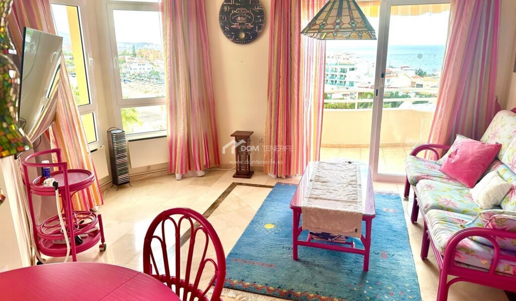Dom Tenerife presenta una oportunidad exclusiva: ubicación privilegiada en Oasis La Caleta. Apartamento en esquina de 3 dormitorios con vistas panorámicas al océano. Se ofrece un exclusivo apartamento en esquina de tres dormitorios, con magníficas vistas despejadas al océano, ubicado en la prestigiosa residencia privada de alta gama ´´Oasis La Caleta´´, una de las comunidades más solicitadas junto al campo de golf Costa Adeje. Este distinguido complejo se caracteriza por sus cuidados jardines tropicales, su zona de piscina climatizada, su ambiente tranquilo y su seguridad, con acceso privado para residentes. Situado en la mejor zona de La Caleta, a tan solo cinco minutos a pie de una gran variedad de restaurantes y cafeterías de alta cocina frente al mar, y a pocos minutos del campo de golf y de la impresionante playa de Bahía del Duque. El apartamento, de 100 m², ofrece un luminoso salón de planta abierta con cocina americana, ambos con abundante luz natural y acceso directo a una terraza privada con espectaculares vistas al océano. El dormitorio principal cuenta con baño en suite con bañera, acceso a la terraza y vistas al mar. Además, dispone de dos habitaciones adicionales que pueden utilizarse como dormitorios o bien como dormitorio y despacho. El segundo baño está equipado con una ducha tipo lluvia con función de masaje. La vivienda está decorada con un estilo artístico y colores vibrantes, reflejando el gusto del actual propietario. No obstante, nuestro departamento de diseño de interiores ha elaborado una propuesta de decoración minimalista para quienes prefieran un ambiente más sobrio y contemporáneo. El apartamento incluye garaje privado y trastero, con acceso directo por ascensor, lo que garantiza la máxima comodidad, especialmente para compras, cochecitos de bebé o sillas de ruedas.Esta es una oportunidad única para adquirir una propiedad excepcional en una ubicación inmejorable. Ideal para disfrutar de una vida residencial de lujo, una jubilación tranquila o inolvidables momentos familiares. Contáctenos hoy mismo para concertar una visita privada.