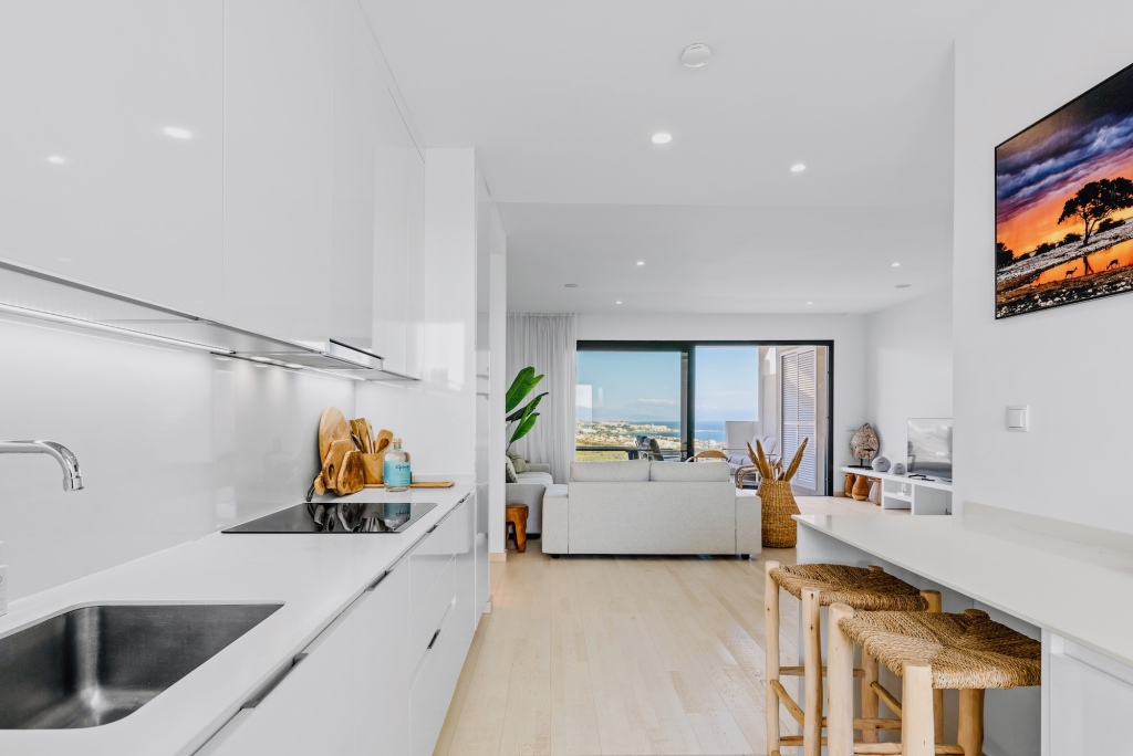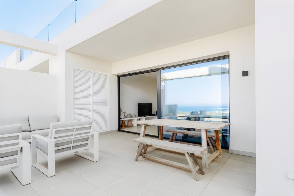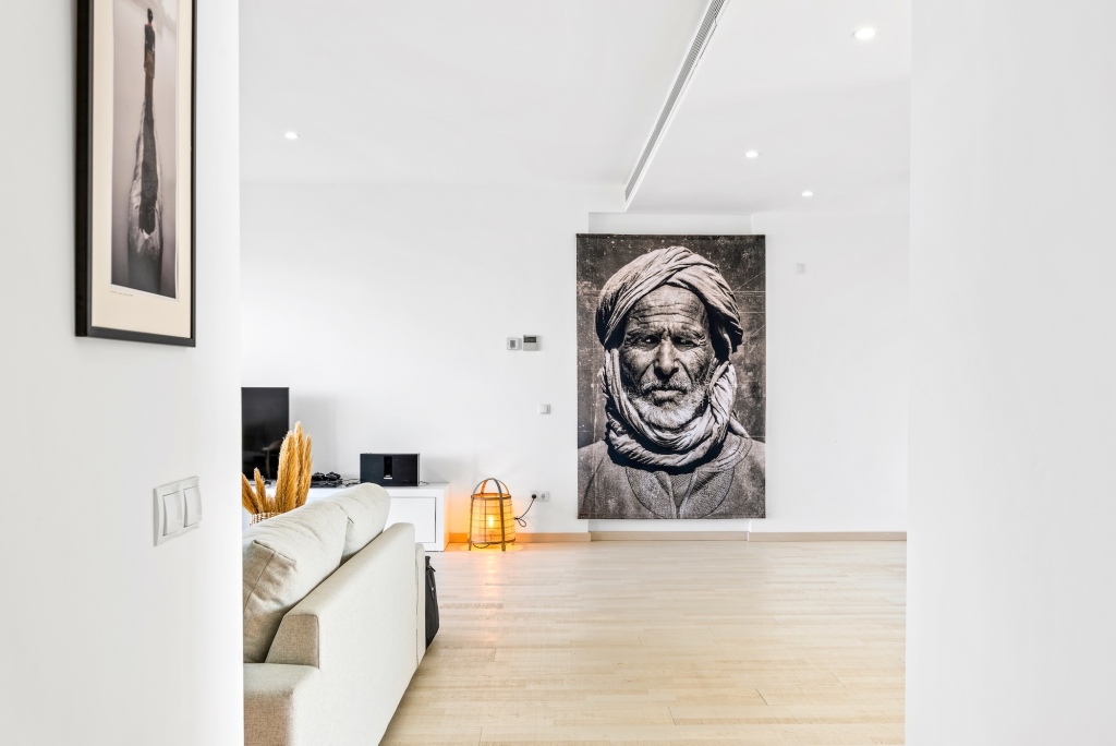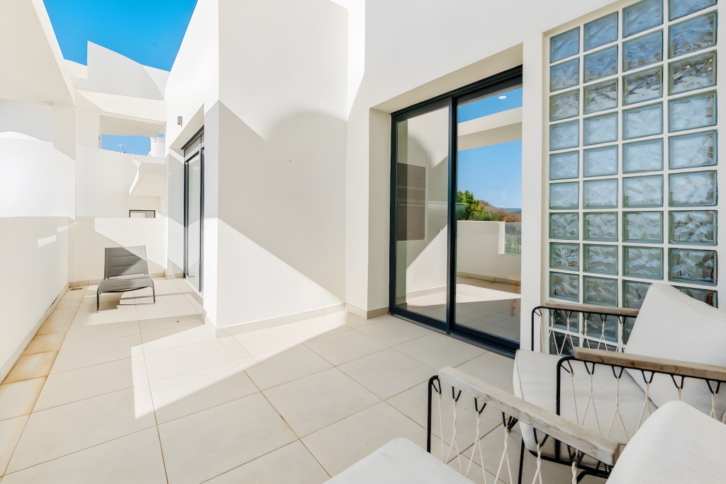 Las dos terrazas, situadas en lados opuestos del apartamento, llenan el hogar de luz natural durante todo el día y ofrecen la posibilidad de disfrutar del sol o de la sombra en cualquier momento. La terraza principal, con barandillas de cristal, maximiza las impresionantes vistas, mientras que la segunda terraza, bañada por el sol, es ideal para relajarse por la tarde.