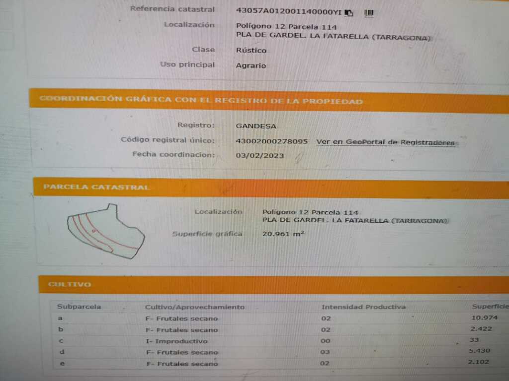IMMOBILIARIA UNIVERSITARIA TGN. LA FATARELLA. PARCELA DE SECANO , 2,10 HECTAREAS. DISPONE DE PEQUEÑA CASETA DE HERRAMIENTAS. SOMOS AGENCIA, NO PARTICULAR.