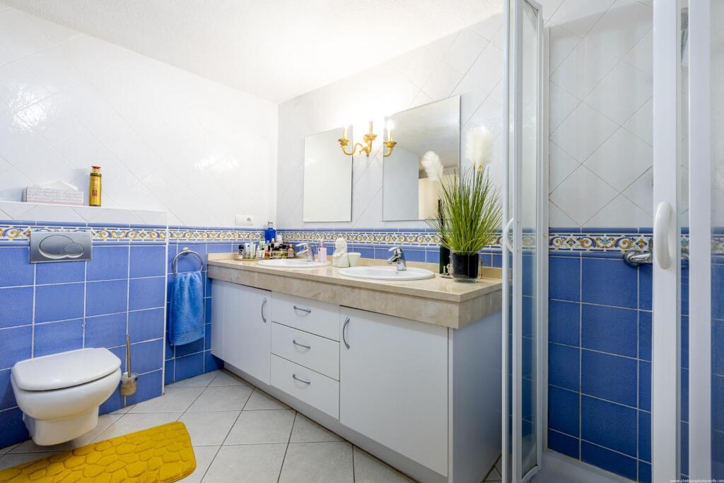 Descubre esta espectacular villa ubicada en el exclusivo complejo El Rincón en Los Cristianos, Tenerife. Con orientación sur y vistas al mar, esta propiedad ofrece luz natural durante todo el día, un ambiente acogedor y espacios exteriores ideales para disfrutar del clima privilegiado de la isla.Características principales:3 dormitorios amplios con armarios empotrados4 baños (uno en suite y un aseo de cortesía)Salón-comedor luminoso con acceso a terraza privadaCocina independiente totalmente equipadaCuarto de lavanderíaVarias terrazas con vistas al mar y a la montañaJacuzzi privado en la terraza áticoZona de barbacoa perfecta para reuniones al aire libreGran garaje cerrado privado con capacidad para 2 coches, acceso directo a la viviendaServicios del complejo:3 piscinas comunitarias (¡una de ellas climatizada!)Entorno tranquilo, ideal para vivir o disfrutar como residencia vacacional Ubicación:En una zona residencial tranquila de Los Cristianos, a pocos minutos del paseo marítimo, playas, restaurantes, tiendas y todos los servicios. Excelente conexión con las principales vías de la isla y a solo unos minutos en coche del aeropuerto del sur.No dejes pasar esta oportunidad única de vivir en uno de los rincones más privilegiados del sur de Tenerife.¡Contáctanos para más información o para concertar una visita!El precio indicado no incluye impuestos ni gastos de escritura. Las superficies expresadas son de carácter descriptivo y aproximados. Los precios son susceptibles de modificación sin previo aviso. Esta propiedad se vende con muebles.Ref. LUX00154