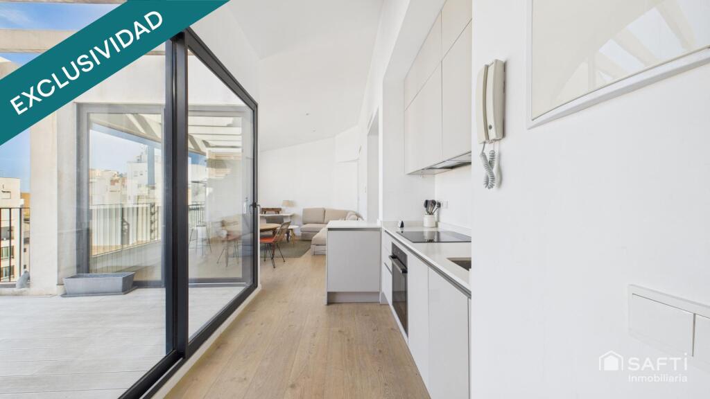 Magnífico apartamento de 58 m², completamente reformado en 2021, situado en la séptima y última planta de un edificio con ascensor, en el codiciado barrio de Arxiduc, en Palma.