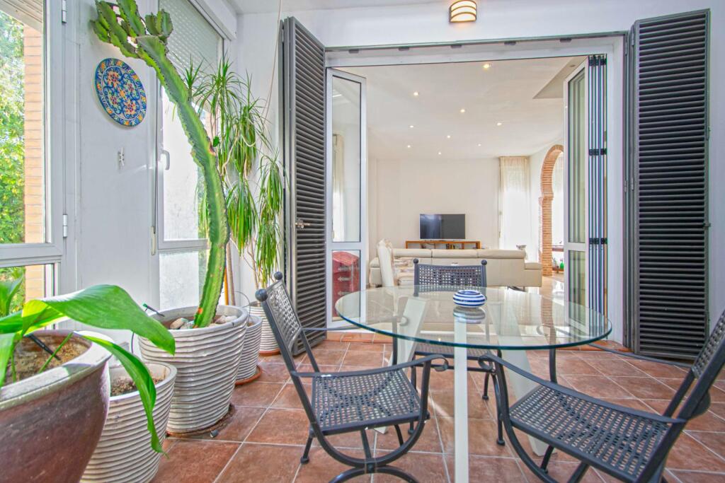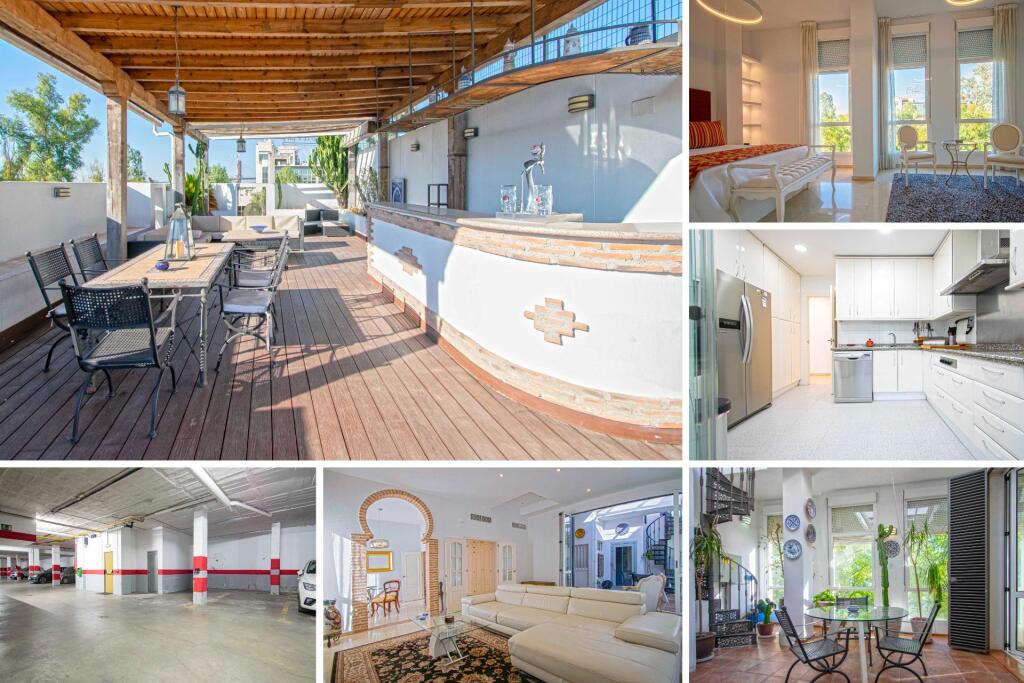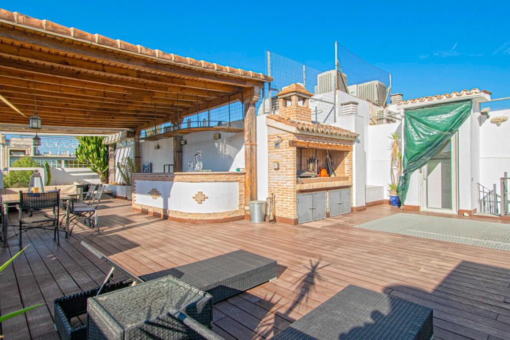 Magnífico ático dúplex ubicado en la Avenida de Jerez, en la prolongación de La Palmera, frente al Hotel Silken Al-Ándalus Palace.Una ubicación privilegiada, rodeada de amplias zonas ajardinadas y perfectamente conectada con el resto de la ciudad.Este inmueble destaca por sus excelentes calidades y sus techos altos, que aportan una sensación de amplitud, elegancia y luminosidad a todos los espacios.Además, forma parte de un edificio con piscina y jardines comunitarios, que ofrece un entorno de tranquilidad y confort.La vivienda se distribuye en dos plantas:En la primera, de 150 m², encontramos un recibidor amplio que da acceso a una cocina espaciosa y luminosa con salida directa al patio y lavadero independiente, así como a un gran salón-comedor, también con acceso al patio exterior.El pasillo, equipado con varios armarios empotrados, conduce a dos dormitorios y dos baños completos.La suite principal dispone de un vestidor de gran tamaño y un baño privado con jacuzzi y ducha, creando un espacio íntimo y relajante.Todas las habitaciones cuentan con armarios empotrados y una excelente iluminación natural.La vivienda dispone de ascensor y escalera interior que conducen a una terraza excepcional, un verdadero espacio de ocio y disfrute, equipada con cocina exterior, barbacoa y 50 m² semi-cubiertos que albergan un bar con barra y tirador de cerveza.Un entorno único para disfrutar de reuniones, cenas o momentos de relax con total privacidad.El precio incluye una plaza de garaje y un trastero de 23 m².Su localización es inmejorable: junto al Estadio Benito Villamarín, colegios de prestigio como Las Irlandesas a pocos minutos, supermercados, así como los Hospitales Virgen del Rocío, Quirón Salud, Sagrado Corazón y Hospital Viamed Fátima. En las inmediaciones se encuentran también importantes sedes empresariales, cuenta con una excelente comunicación con la SE-30, estación de cercanías y múltiples líneas de autobús que conectan con toda la ciudad.Informamos a nuestros clientes compradores que el precio de venta no incluye lo siguiente: Honorarios de la agencia inmobiliaria, Impuestos (I.T.P., I.V.A. o A.J.D., en su caso) ni otros gastos de la compraventa (gastos de Registro de la Propiedad, Notaría, Gestoría ni de posible Financiación). Documento F.I.S. a disposición del consumidor según Decreto 218/2005 Junta de Andalucía.