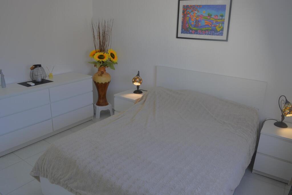 En la planta superior, el tercer dormitorio —también equipado con aire acondicionado tipo split— te sorprenderá con su amplitud, su gran cama y su salida directa al solárium.
