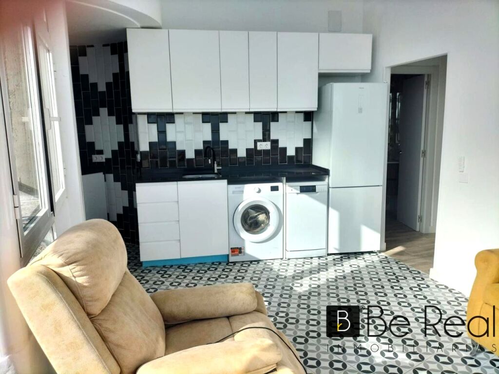 Una vez en la vivienda; el salón con una luz brutal, ya que parte de su estancia es de cristal de suelo a techo hace que se integre absolutamente con la terraza; cocina abierta con dos zonas diferenciadas ( una de ellas donde se sitúa la zona de cocinado), amueblada y totalmente equipada con lavadora, lavavajillas y frigorífico; dos dormitorios, uno de ellos con 2 armarios y un baño con gran ducha circular.