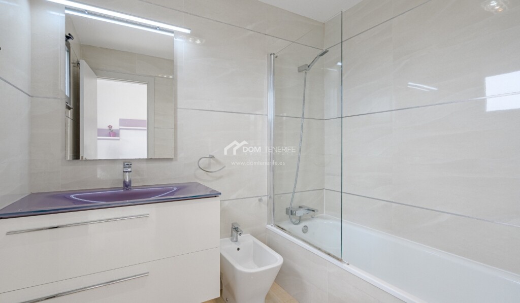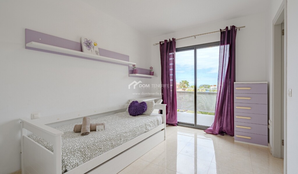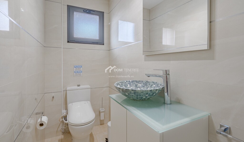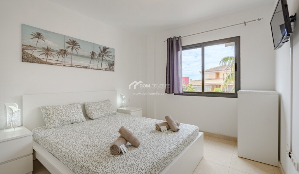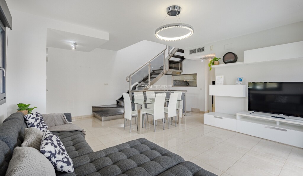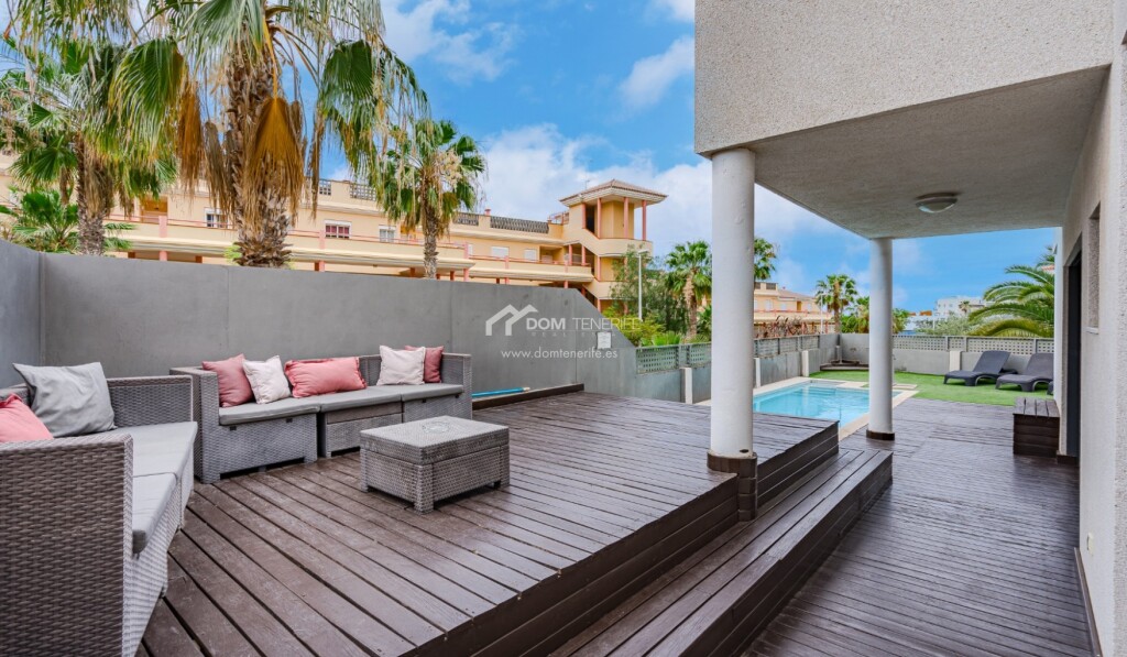 Nos complace presentar este exclusivo y encantador adosado en el corazón de Adeje, en la prestigiosa zona de El Galeón. Una vivienda que combina elegancia, confort y estilo, pensada para quienes buscan un hogar con alma.Esta propiedad ha sido completamente reformada con exquisito gusto, utilizando materiales de alta calidad y decorada con mobiliario moderno y de diseño, creando un ambiente acogedor y sofisticado.Dispone de tres amplios dormitorios, cada uno con su propio baño en suite y balcón privado, donde la luz natural acaricia cada rincón. Al acceder por su entrada independiente, te recibe un salón espacioso y luminoso, ideal para disfrutar de momentos inolvidables en familia, junto a una cocina independiente totalmente equipada y un aseo para invitados.En el exterior, un jardín cuidado y una piscina privada invitan al descanso, al sol y a la calma. Además, la vivienda cuenta con un garaje privado para dos coches.El complejo no permite licencias de Vivienda Vacacional (VV), garantizando así un entorno sereno y residencial, donde la tranquilidad es parte del día a día.A tan solo unos pasos encontrarás el Centro Comercial El Galeón, con sus tiendas, restaurantes y todos los servicios que hacen la vida más cómoda.Un lugar perfecto donde cada detalle inspira bienestar, y donde vivir se convierte en un placer cotidiano. IBI 513,82€, comunidad 60€