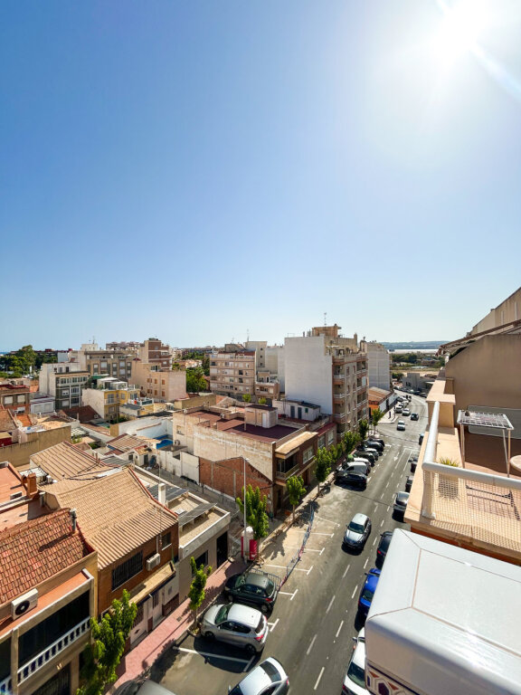Te presentamos este fantástico ático en venta en Torrevieja, una vivienda con mucho encanto, ideal para quienes buscan espacio, luz y una ubicación privilegiada cerca del mar. Situado en la quinta planta de un edificio con ascensor, cuenta con 112 m² distribuidos en tres dormitorios luminosos, dos baños completos, una cocina independiente y un salón-comedor acogedor con acceso directo a una estupenda terraza.