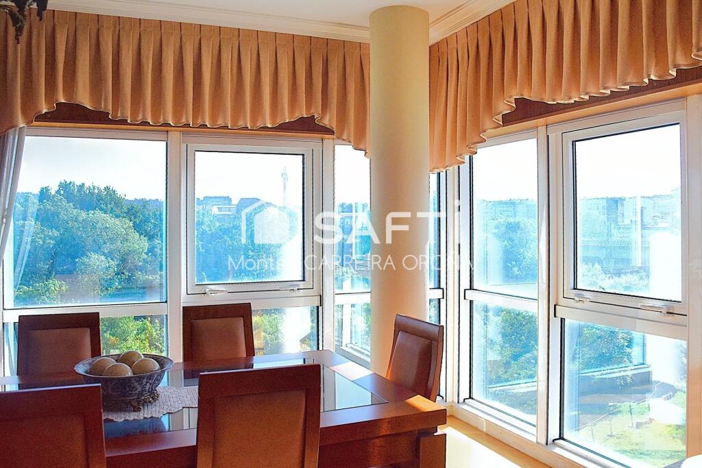 El salón-comedor es espectacular: amplio, muy luminoso gracias a sus dos grandes ventanales con persianas eléctricas, y decorado con un estilo clásico contemporáneo que combina elegancia y confort.