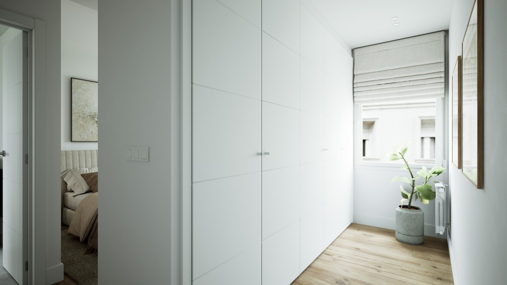 La vivienda cuenta con una distribución excepcional al tener una gran salón comedor con cocina abierta equipada, 3 amplias habitaciones -la principal con vestidor y baño en suite-, y 2 baños con ventanas. Además, cuenta con armarios empotrados en todas las habitaciones y en el hall de entrada.