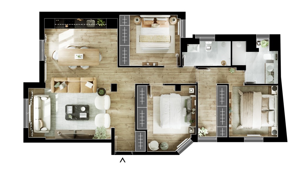 Las imágenes renders, son simulaciones hiperrealistas del proyecto, que pueden sufrir modificaciones motivadas por exigencias técnicas o administrativas.