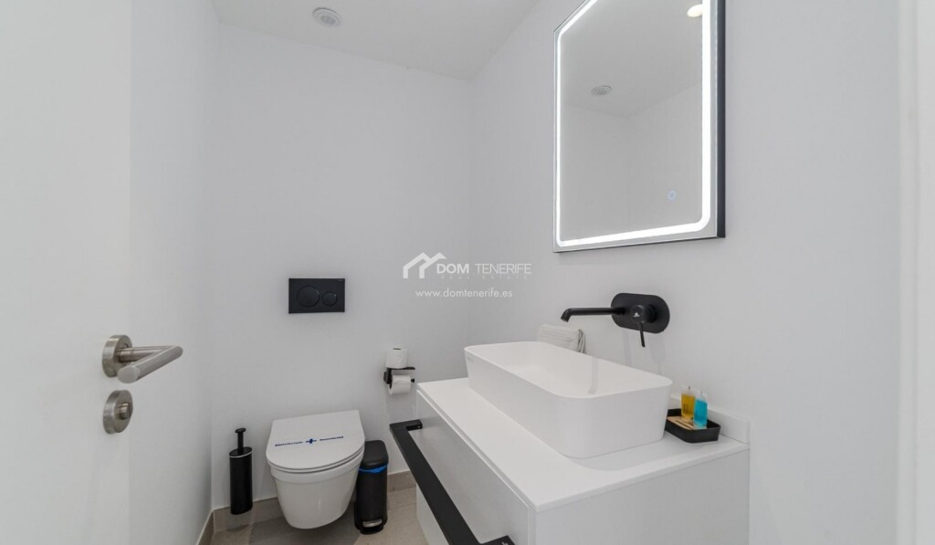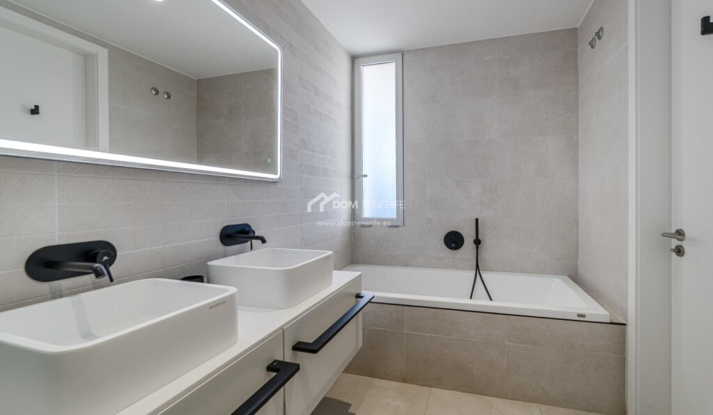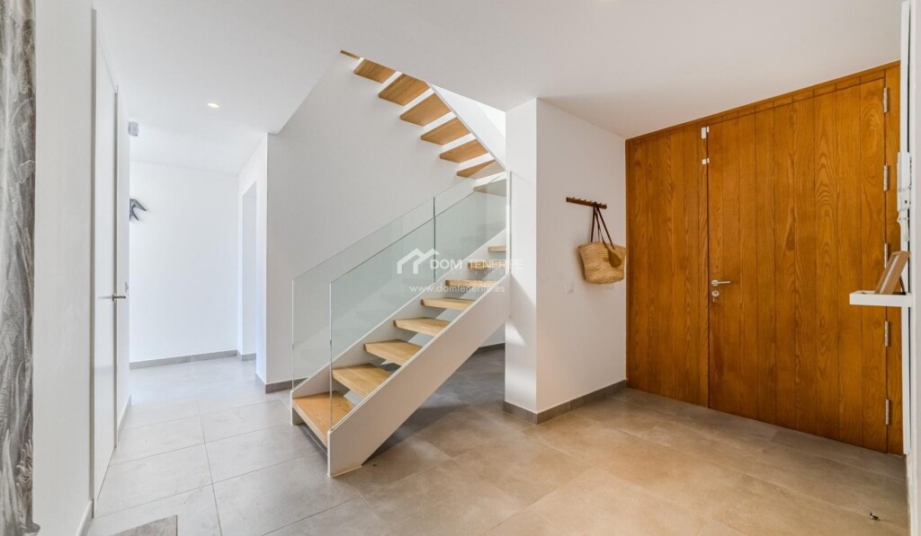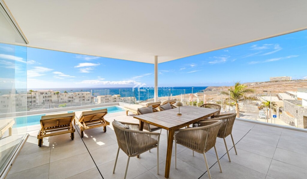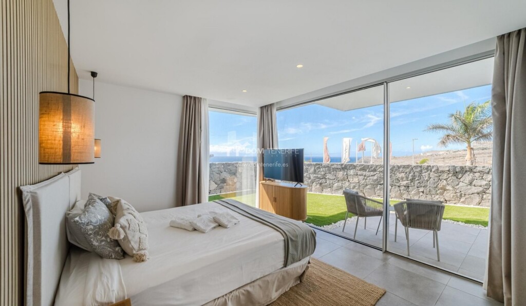 Ubicada en la prestigiosa zona residencial de Rokabella, a solo 300 metros del océano, esta villa de lujo representa la perfecta combinación de arquitectura contemporánea, diseño exclusivo y un estilo de vida costero privilegiado en el sur de Tenerife. Creada por el reconocido arquitecto Leonardo Omar, la propiedad presenta líneas modernas, espacios interiores abiertos y una perfecta integración entre interior y exterior, enmarcada por espectaculares vistas al Océano Atlántico y a la isla de La Gomera. Construida con los más altos estándares de calidad y materiales de primera, la villa ofrece elegancia y confort en cada detalle. En la planta alta se encuentra un amplio salón de planta abierta con ventanales de suelo a techo que inundan el espacio de luz natural, una cocina de diseño equipada con electrodomésticos de alta gama y acceso directo a una piscina infinita climatizada con solárium y vistas al mar. La planta baja dispone de tres elegantes dormitorios dobles, cada uno con baño en suite y acceso a un jardín privado de aproximadamente 100 m². Entre las comodidades adicionales destacan un ascensor privado, lavandería y garaje con acceso automático. Situada en una urbanización moderna y tranquila, esta exclusiva propiedad goza de una ubicación inmejorable cerca de las mejores playas de Costa Adeje, centros comerciales de lujo, restaurantes gourmet, hospitales y el Aeropuerto de Tenerife Sur. El complejo permite el alquiler vacacional, lo que la convierte no solo en una vivienda de ensueño sino también en una excelente oportunidad de inversión. Una villa que combina excelencia arquitectónica, vistas panorámicas al mar, privacidad y proximidad a los principales atractivos de la isla; ideal para quienes buscan exclusividad, calidad y elegancia moderna junto al mar.