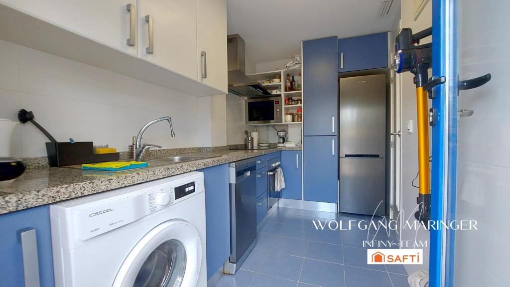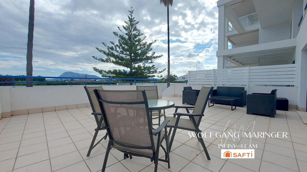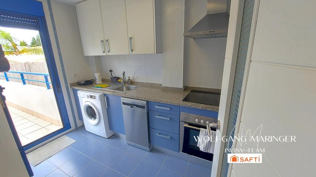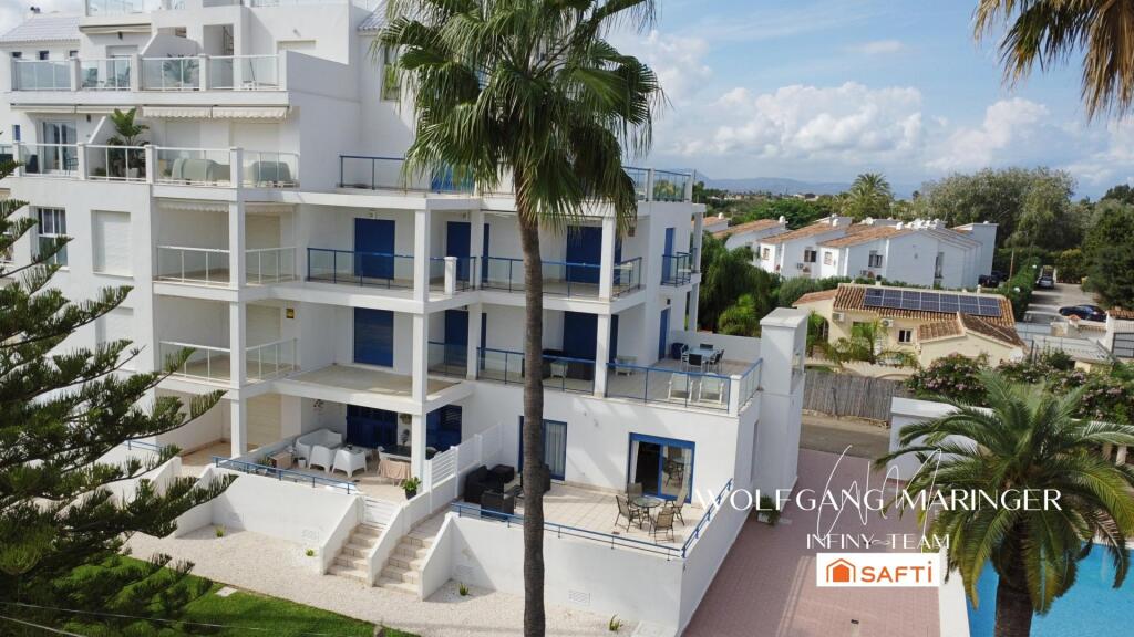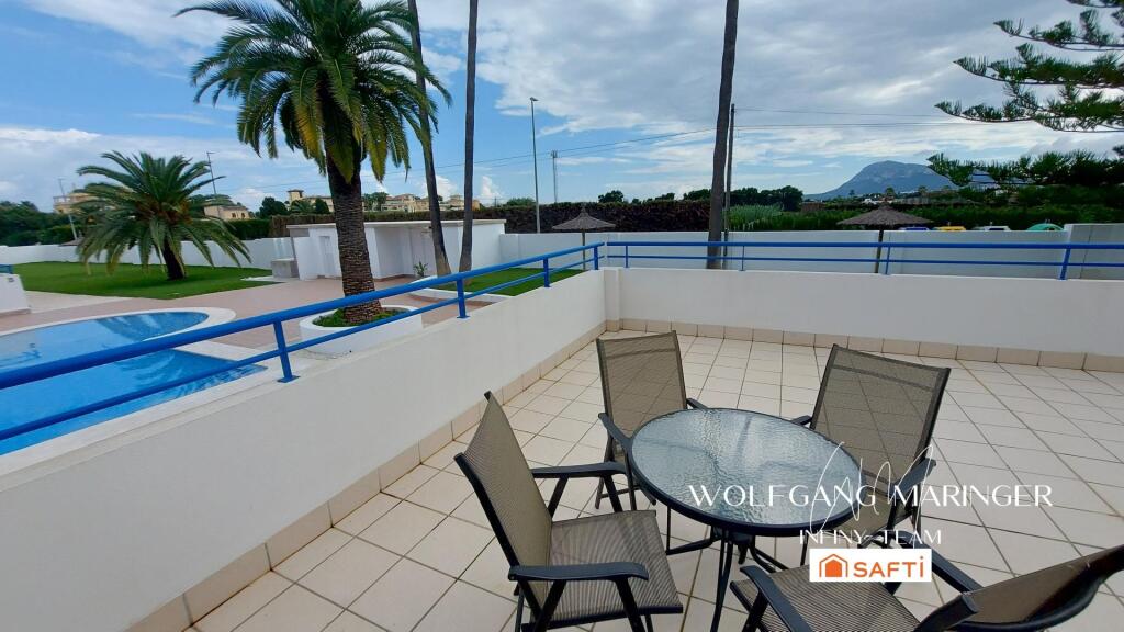La urbanización ofrece un amplio jardín con palmeras, zonas verdes muy bien mantenidas y una gran piscina comunitaria. A tan solo 300 m de un supermercado, 900 m de varios restaurantes y a 15 min en coche de Dénia, centro vibrante de la Marina Alta con todos los servicios. Dos aeropuertos internacionales se encuentran a apenas 100 km.