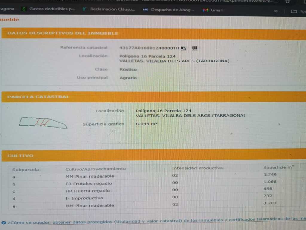 IMMOBILIARIA UNIVERSITARIA TGN. 1.611 HECTAREAS, 2 PARCELA DE SECANO, PERO ANTES, UNA DE ELLAS TENIA UN POZO CON AGUA, AHORA NO SE SI TIENE AGUA, POR ESO LAS VENDEMOS COMO DE SECANO, AUNQUE SEGURO QUE SI EN EL POSO HABIA AGUA, SERIA ESCABAR UN POCO MAS, Y SEGURO QUE HAY AGUA, Y SE PUEDE REGAR, , Y UNA DE ELLAS , ERA DE REGADIO, HACIAN HUERTA,..HABIA 1700 METROS APROXIMADAMENTE, DE REGADIO... 1.611 HECTAREAS. . SON DOS REFERENCIAS CATASTRALES, DOS TERRENOS, UNO AL LADO DE OTRO,.. TOTAL 1,611 HECTAREAS. PODEIS VER EN EL ANUNCIO EL POLIGONO Y PARCELAS DE LAS DOS. OPORTUNIDAD. SOMOS AGENCIA NO PARTICULAR. IMMOBILIAIRA UNIVERSITARIA TGN.GRAN OPORTUNIDAD.