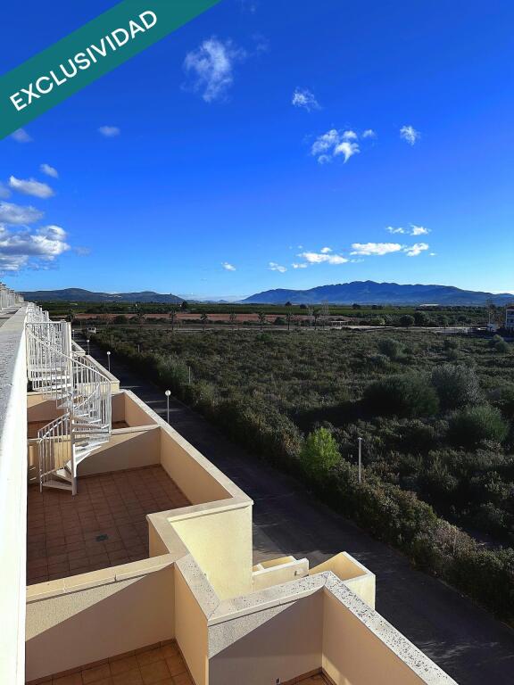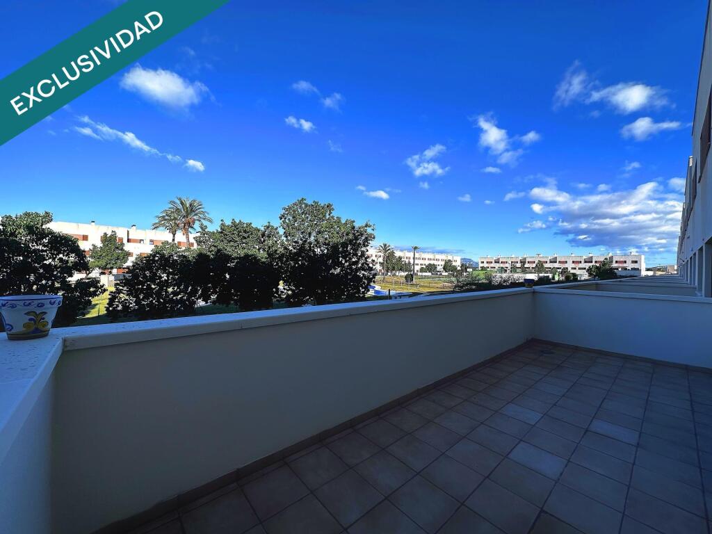 Distribución funcional: amplio salón-comedor con acceso a terraza principal, cocina independiente, dos dormitorios dobles, dos baños completos y solárium privado en la tercera planta, ideal como zona chill-out o mirador panorámico.
