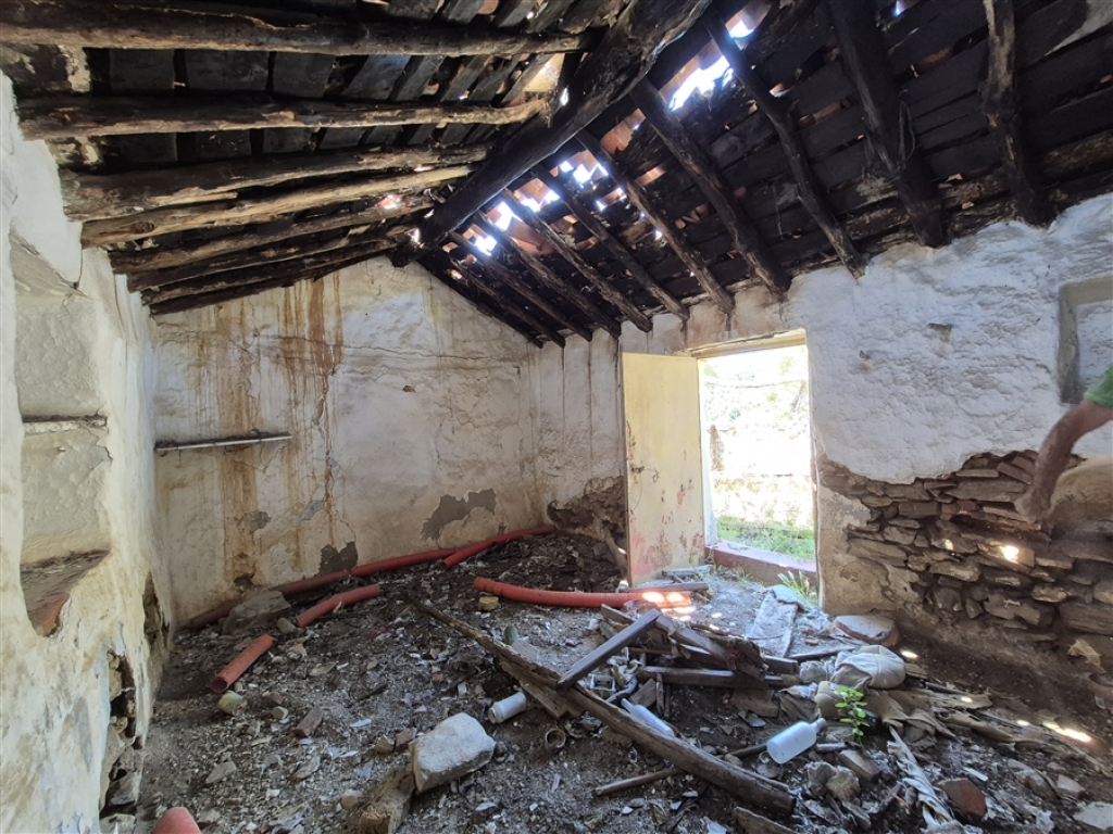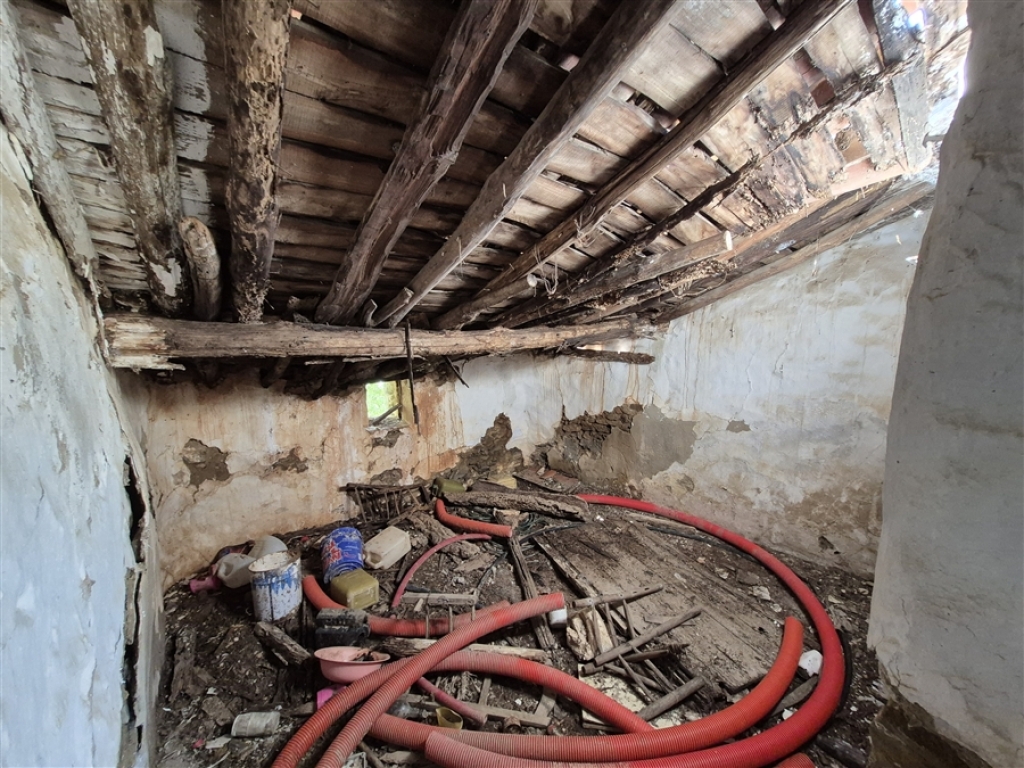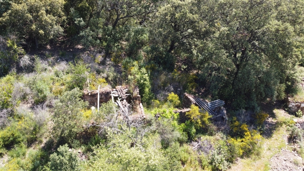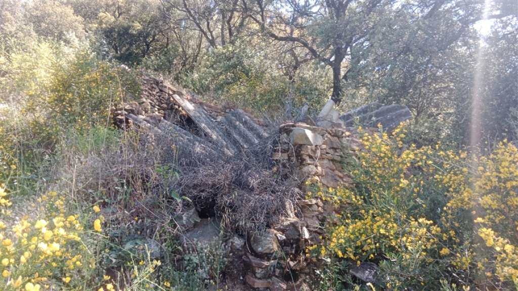En la propiedad se encuentra una casa antigua de unos 70 m², bastante deteriorada, así como dos ruinas de piedra correspondientes a antiguos corrales para animales, que en total suman unos 40 m².