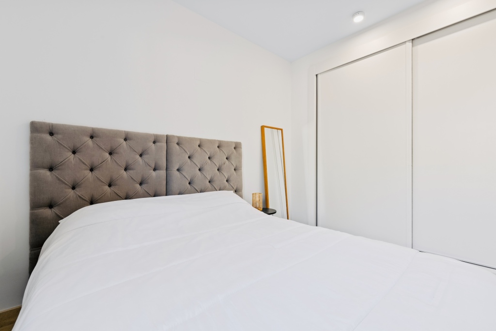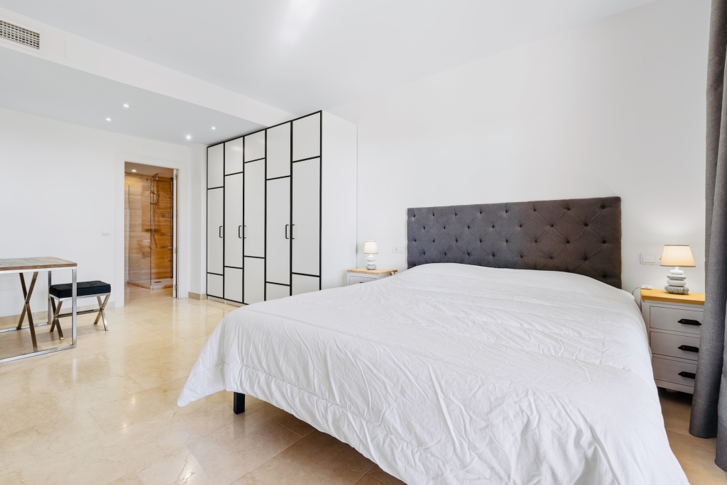 La suite principal, de gran tamaño, tiene acceso directo a la terraza e incluye una zona de trabajo, amplios armarios y un baño en suite con bañera y ducha italiana.