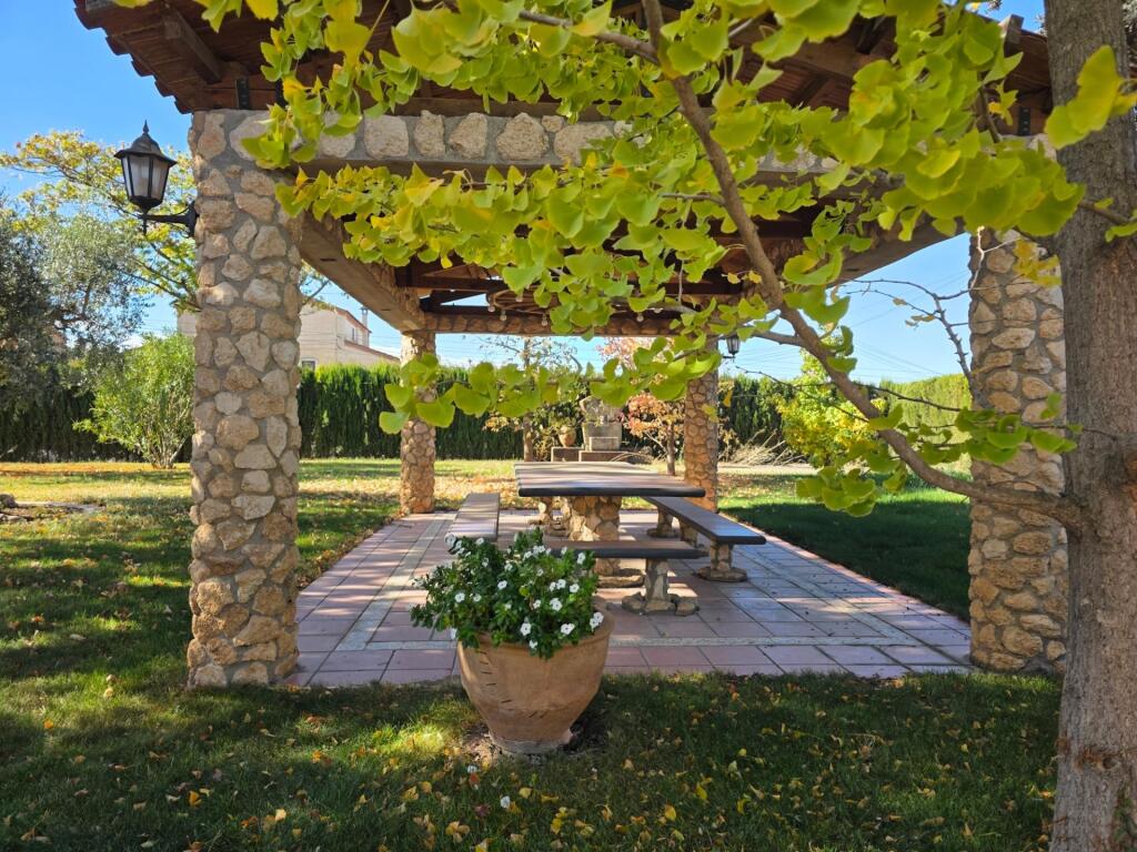 Amplios espacios, zona tranquila, luminosa y bien ventilada, con orientación suroeste. Gran jardin arbolado con cesped, zona para comidas al aire libre, con familia y amigos. Junto al jardin salón equipado con barbacoa y todo lo necesario para celebracciones familiares, en invierno o verano, ya que está equipada con aire acondicionado y todo lo necesario para preparar las mas apetitosas recetas.La casa de 2 plantas con 140 m2 cada una se han actualizado con el mas exquisito interiorismo. En la planta baja, se accede a distribuidor, por la izquierda encontramos habitación tipo suite, con vestidor y baño completo, tiene otras 2 habitaciones amplias, una de ellas tiene actualmente la función de gimnasio, otra la de despacho. Gran comedor con amplios ventanales que dotan de gran luminosidad a toda la estancia. Colindante con el Salón/comedor tiene cocina, amplia, totalmente equipada, con salida a terraza, preparada para poder funcionar como cocina exterior /barbacoa.La 1º planta tiene un diferenciado nivel de acabados, con modernos materiales de máxima calidad. Suelo cerámico, baño luminoso con gran ventanal que al igual que los del resto de la casa tienen doble acristalamiento climalit y la mas moderna tecnologia para elevar la eficiencia energetica de todo el conjunto. Cocina office con electrodomesticos de alta gama, mostrador funcional, tipo barra que comunica con el salón , campana extractora moderna, con la maxima capacidad de absorción de humos y olores ya que está conectada a motor de gran capacidad instalado en la buardilla, con lo que se evita cualquier ruido en la zona. El salón esta diseñado con grandes ventanales en todo el perímetro sur de la casa, por lo que tiene unas excelentes vistas al campo y sol durante todo el día. En esta segunda planta encontramos terraza exterior/solarium con habitación para el cuidado de la ropa, totalmente equipada, con lavadora, pila de lavado a mano para prendas delicadas, material de planchado, armarios,etc.La buhardilla, se ha habilitado con gran zona diáfana multifunción, sala de juegos, biblioteca, zona de estudio, etc. Se accede a esta estancia desde el salón.En la parte posterior de la propiedad dispone de 2 naves industriales y almacen con una superficie total de 1400 m2, con algun complemento más, varios cubiertos, campa, etc. Tiene oficina/despacho, vestuario, aseos, etc. Esto permite optimizar la superficie total de la propiedad compaginando actividad profesional y residencial.