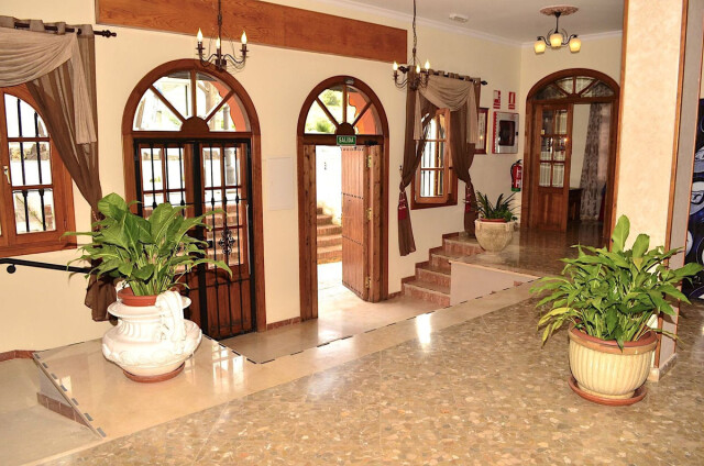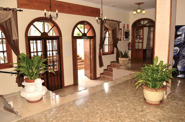 En la planta baja (431 m² construidos), se encuentran una amplia recepción, vestíbulo, sala de espera, almacén, oficina, salón, bar y cafetería con una pequeña cocina y 7 habitaciones, una de ellas totalmente adaptada para personas con discapacidad.
