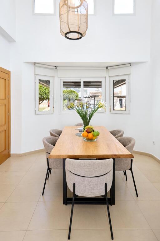 Exclusividad, elegancia y confort.Descubre esta villa independiente totalmente reformada a estrenar, ubicada en una de las calles más privilegiadas y tranquilas de La Torre Golf Resort, una de las urbanizaciones más valoradas de la Región de Murcia.Una vivienda diseñada para disfrutar de la vida con estilo y comodidad, ideal tanto como residencia habitual como para vacaciones o inversión.✨ Características destacadas:📐 Parcela de 278 m2 | 112 m2 construidos🛏️ 2 dormitorios dobles🛁 2 baños completos🏊♂️ Piscina privada🌿 Jardín amplio, cuidado y con estilo mediterráneo🌞 Solárium privado🚗 Plaza de garaje incluida🧺 Zona lavadero con armarios empotrados❄️ Aire acondicionado y calefacción en toda la vivienda🌐 Internet y seguridad 24h incluidos en la comunidadCada rincón de la vivienda ha sido diseñado con gusto y funcionalidad, con materiales de calidad, toques elegantes y una distribución que aporta luz natural y amplitud.🗺️ Ubicación privilegiada:Situada en Torre Pacheco, en una zona tranquila, rodeada de zonas verdes y con acceso inmediato a todos los servicios del resort:Campo de golf, restaurantes, supermercado, tiendas y zonas deportivasA solo 25 minutos del Aeropuerto Internacional de Murcia📞 Contáctanos hoy mismo para más información o concertar una visita.Gastos compraventa y honorarios agencia no incluidos en precio,Tu nuevo hogar en La Torre Golf Resort te está esperando.