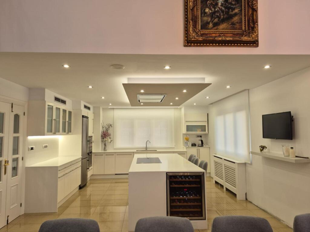La planta principal fusiona salón con chimenea y diseño de doble altura con ventanales con vistas al mar, comedor para 16 comensales y cocina moderna con isla, electrodomésticos de alta gama y vinoteca. Una habitación con baño en suite y aseo de cortesía.