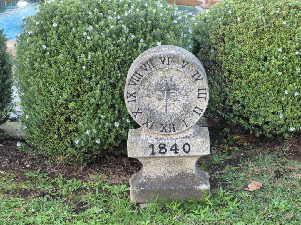 Exteriores en piedra: jardín con cenador, fuente, reloj solar. Gimnasio, garaje, cancha de tenis.