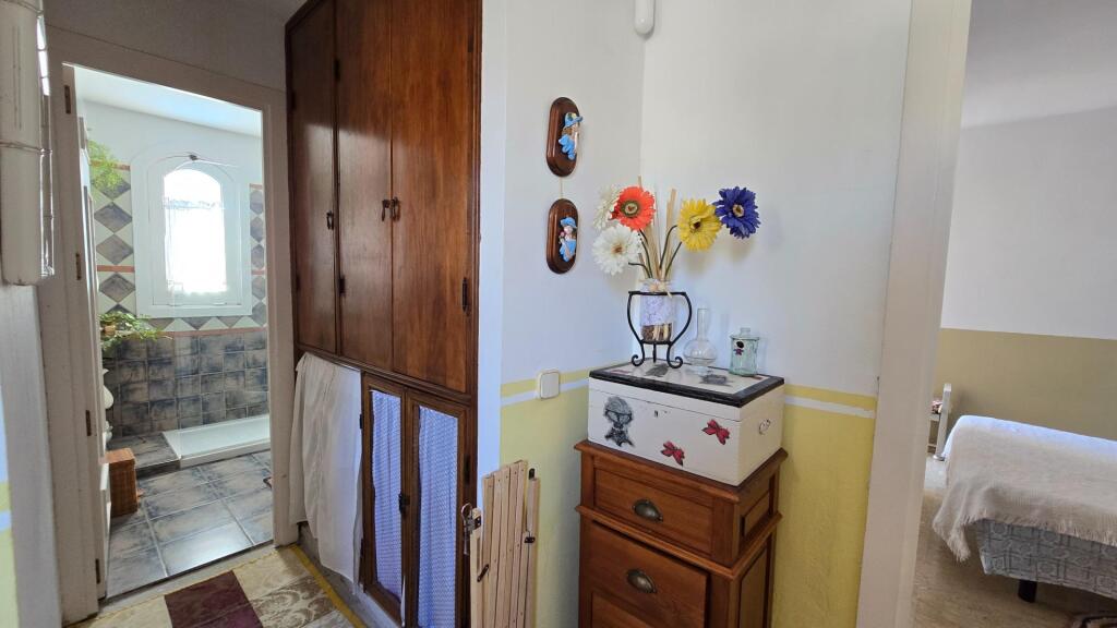Acogedor adosado de 3 plantas, de estilo Andaluz, en una zona privilegiada de Marbella, cada vez en más expansión entre Marbella y San pedro de Alcántara.En la primera planta encontramos un amplio salón con cocina semiabierta, aseo, despensa y una pequeña terraza con salida a la piscina comunitaria, de uso solo para 3 viviendas, en la segunda planta dos habitaciones, una con baño en suite y en la planta solárium se ha añadido otra habitación de obra con salida a la terraza. Una vivienda con muchas posibilidades, para vivir o invertir en la zona, no tiene parking, pero se puede aparcar casi en la puerta y se alquilan plazas de parking en edificio a 20 m.