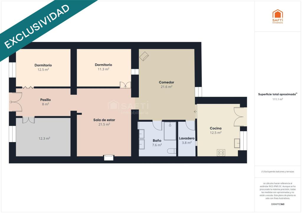 La vivienda se distribuye en tres habitaciones, un amplio salón, comedor independiente, cocina equipada, y un baño completo.
