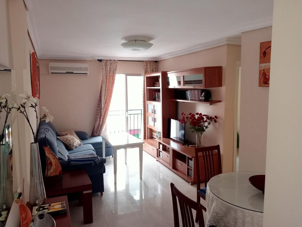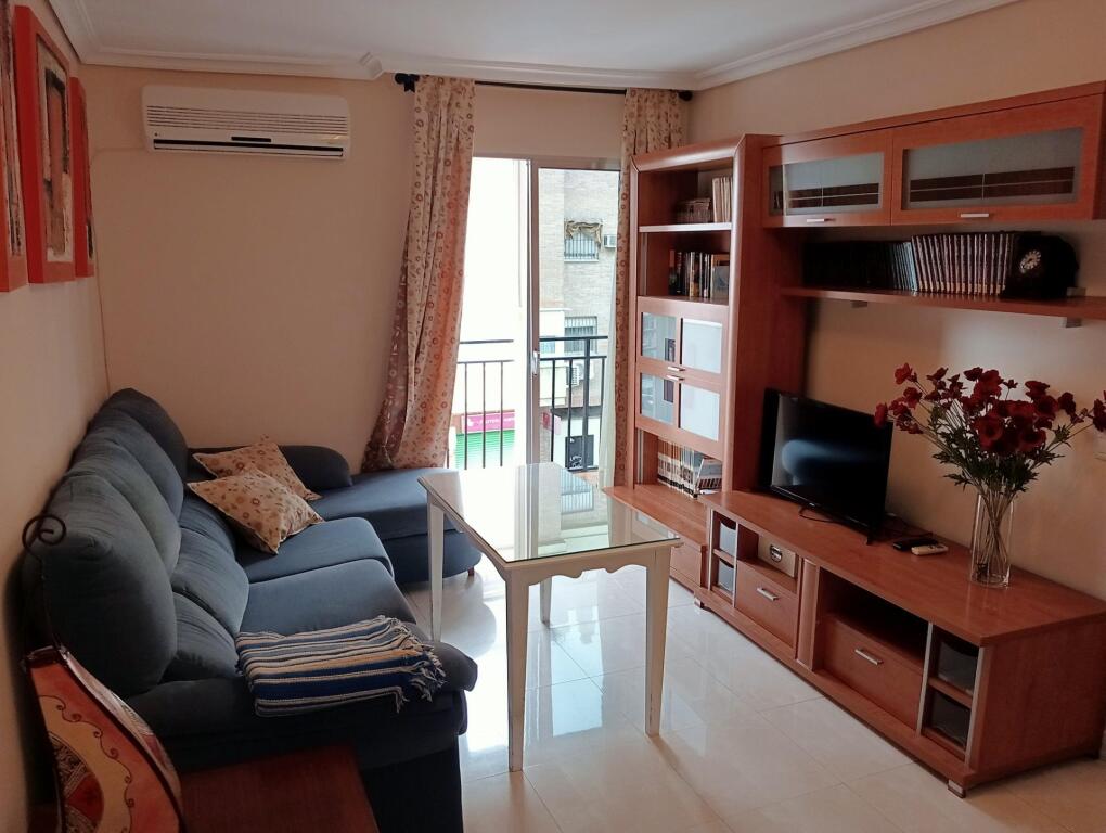 Magnifico piso amueblado con ascensor cerca de la calle Arroyo.La vivienda consta de 67m² con salón con aire acondicionado frío-calor, con salida a una terraza.Cocina independiente amueblada con electrodomésticos: vitrocerámica de cuatro fuegos, campana extractora, frigorífico, lavadora, microondas y termo de gas ciudad.Baño con ventilación, completo con bañera.Posee 3 habitaciones. Habitación principal con cama canapé con armario empotrado, 2ª habitación con cama individual y 3ª habitación con sofá cama.Ventanas de aluminio, puerta lacadas en blanco y solería porcelánico.Portal: entrada hay cuatro escalones con elevador, ascensor y azotea visitable para tender.No se admiten mascotas perro y gato.Renta mensual con la comunidad y agua incluida. Inquilino paga suministros de electricidad y gas ciudad. para el agua caliente.Informamos a nuestros clientes arrendatarios: Documento D. I. A. a disposición del consumidor según Decreto 218/2005 Junta de Andalucía. Libre de Honorarios Profesionales de Agencia Inmobiliaria para el arrendatario/a. Fianza a entregar por la parte arrendataria: 1 mes.