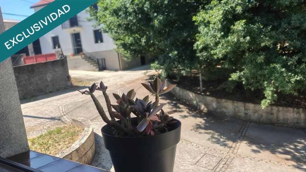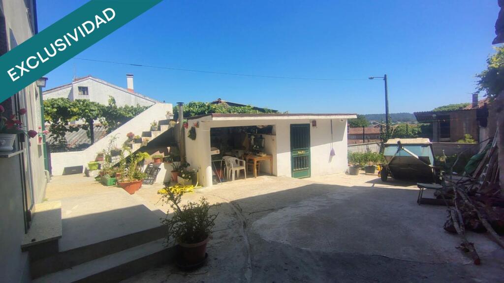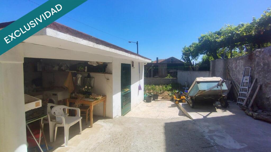 En el exterior, la casa ofrece un pequeño terreno ideal para huerto, piscina o zona de ocio, dos construcciones anexas (almacén/caldera y lareira exterior) y zona de aparcamiento en la zona de delante y detrás de la casa, con espacio suficiente para dos coches.