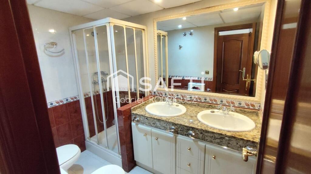 Baño completo amueblado con plato ducha en suite principal.