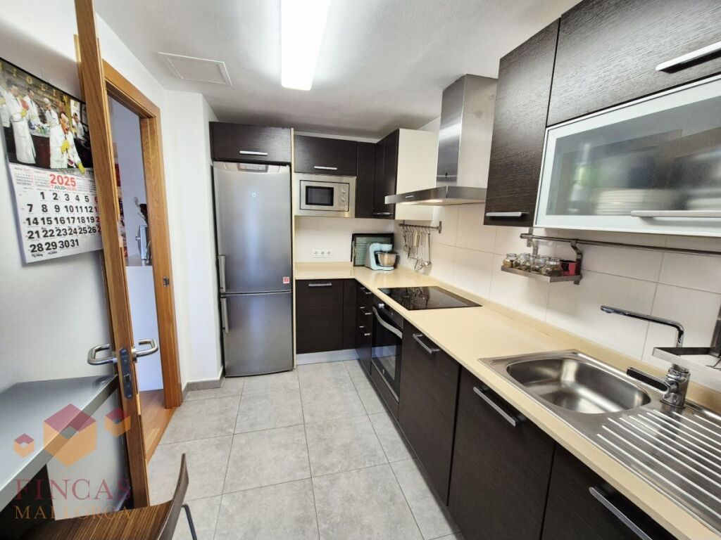 ÁTICO CON SOLÁRIUM zona Parc de la Femu – S’Olivera – Amanecer, 4º con ascensor (6 plazas), 90m2, 2 habitaciones dobles con armarios empotrados, 1 baño completo (con bañera), salón-comedor 25m2 con acceso a amplio balcón, cocina independiente con acceso al mismo balcón/terraza (cabrían dos sillas y mesa pequeña), coladuría, pequeño recibidor. Agradables vistas a calle arbolada y lateralmente al Parc de la Femu. Suelos de parquet madera, climatización bomba frio/calor centralizada individual por conductos, carpintería interior madera, carpintería exterior aluminio/climalit, alarma conectada a policía (opcional), etc. MEMORIA DE CALIDADES CONSTRUCTIVAS en imagen al final del carrusel de fotos.