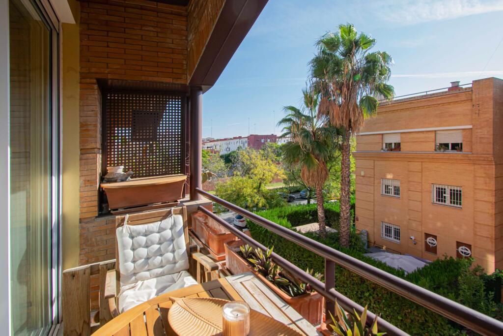 En el distinguido edificio “Tabladilla”, situado en la calle Genaro Parladé esquina con calle Luis Rosales, se encuentra esta luminosa y elegante vivienda ubicada en la segunda planta de un edificio exento en todas sus fachadas, rodeado de un cuidado jardín y una reciente valla perimetral que realza su presencia.Construido en 1994, el edificio cuenta con solo dos viviendas por planta, ofreciendo un ambiente tranquilo y selecto.La vivienda, con una superficie construida de 118 m² más 16 m² de zonas comunes, disfruta de una magnífica orientación sur-oeste-norte, lo que garantiza abundante luz natural y una excelente ventilación cruzada.Su distribución es cómoda y funcional:•Hall de entrada con armario gabanero•Amplio y luminoso salón, orientación sur, con terraza y gran ventanal •Cocina elegantemente amueblada y reformada en 2021•Dormitorio principal con armario empotrado y baño completo, con placa de ducha, en suite•Dos dormitorios adicionales, ambos con armarios empotrados•Baño común completo, con placa de duchaLa vivienda fue reformada íntegramente en 2021, y se encuentra en excelente estado de conservación. Dispone de aire acondicionado centralizado frío/calor, suelo de mármol blanco veteado y carpintería exterior de aluminio en color blanco con acristalamiento Climalit, que aseguran confort y eficiencia energética.Completa esta atractiva propiedad una amplia plaza de garaje con capacidad para coche y moto, y un cuarto trastero de gran capacidad, ambos situados en el mismo edificio.Una vivienda elegante, luminosa y con una ubicación inmejorable, ideal para quienes buscan confort y distinción en una de las zonas más valoradas de Sevilla.Llámenos sin compromiso para realizar una visita. Estaremos encantados de atenderle.Informamos a nuestros clientes compradores que el precio de venta no incluye lo siguiente: Honorarios de la agencia inmobiliaria, Impuestos (I.T.P., I.V.A. o A.J.D., en su caso) ni otros gastos de la compraventa (gastos de Registro de la Propiedad, Notaría, Gestoría ni de posible Financiación). Documento F.I.S. a disposición del consumidor según Decreto 218/2005 Junta de Andalucía.