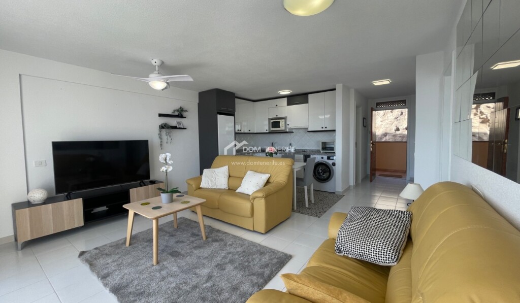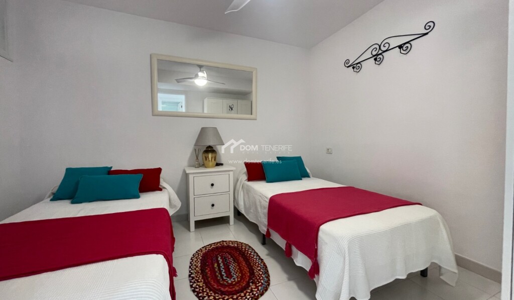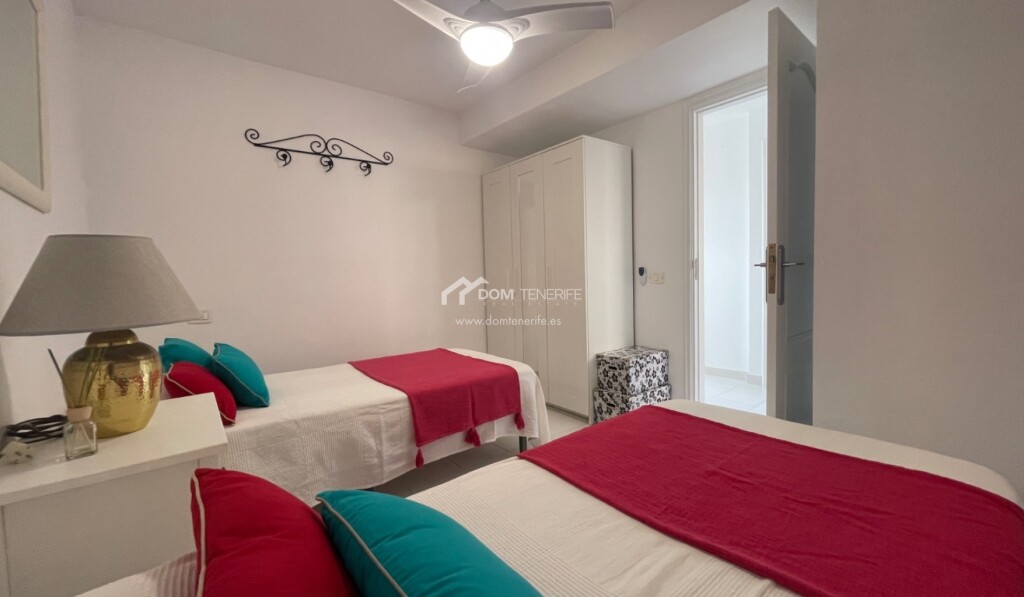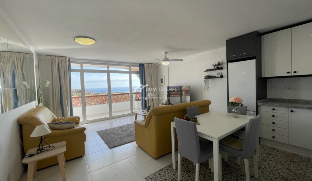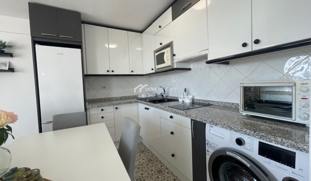 Para alquiler a largo plazo (mínimo 6 meses): un acogedor apartamento de 2 dormitorios recientemente renovado en Palm Mar, situado en el complejo "Flamingo". Este apartamento totalmente amueblado y equipado está situado en un edificio con ascensor y cuenta con una terraza que ofrece fantásticas vistas al mar. Convenientemente situado al otro lado de la calle de un encantador centro comercial con restaurantes y bares, el apartamento también ofrece fácil acceso al transporte público y diversos servicios. Aparcamiento disponible en la via publica, no hay parking privado.Se requiere prueba de buena solvencia o aval bancario. Se aplica fianza y honorarios de agencia. Disponible a partir de ahora.Precio del alquiler 1.300€ + todas las facturas.No se admiten mascotas, lo sentimos.