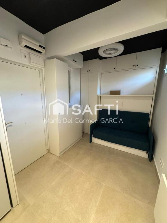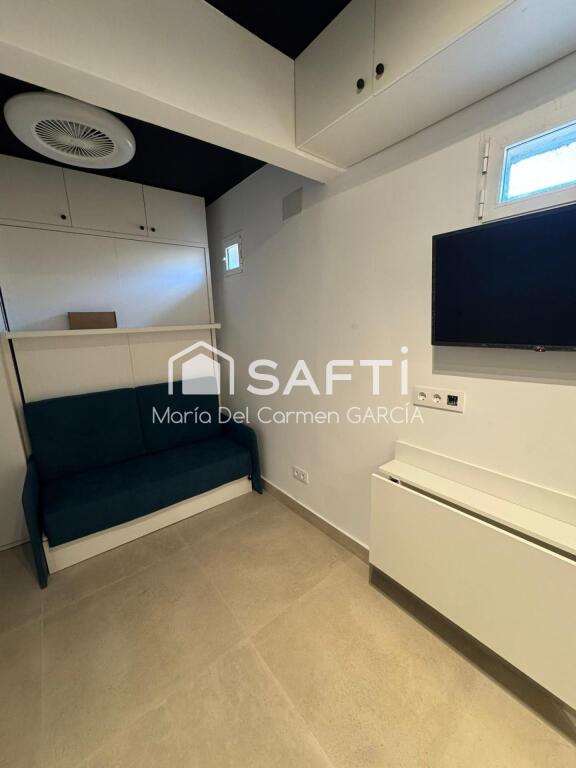 Este estudio es un espacio inteligentemente diseñado para aprovechar cada metro. Disfruta de un ambiente único luminoso que integra zona de descanso/estar con sofá y cama abatible, baño con ducha amplia, cocina completa y equipada (nevera, placa, microondas, etc.).