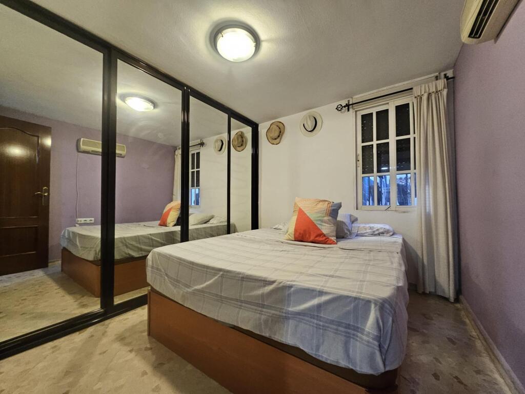 Piso en venta en c/ Telescopio, situado en planta baja, con patio de uso privativo.Vivienda de 50 m2 construidos distribuida de la siguiente manera:- Un baño completo con placa de ducha.- Salón-comedor con split de aire acondicionado frío/calor (en funcionamiento).- Cocina amueblada.- Habitación principal con armario empotrado.- Habitación individual con armario empotrado y acceso a un pequeño patio. Tiene split de aire acondicionado (no está en funcionamiento).- Patio de uso privativo con césped artificial y puerta de acceso al interior de la vivienda con rejas.La vivienda dispone de puerta principal de hierro, puertas de madera, solería de terrazo y ventanas de aluminio lacadas en blanco.Llámenos para más información, estaremos encantados de atenderle.Informamos a nuestros clientes compradores que el precio de venta no incluye lo siguiente: Honorarios de la agencia inmobiliaria, Impuestos (I.T.P., I.V.A. o A.J.D., en su caso) ni otros gastos de la compraventa (gastos de Registro de la Propiedad, Notaría, Gestoría ni de posible Financiación). Documento F.I.S. a disposición del consumidor según Decreto 218/2005 Junta de Andalucía.