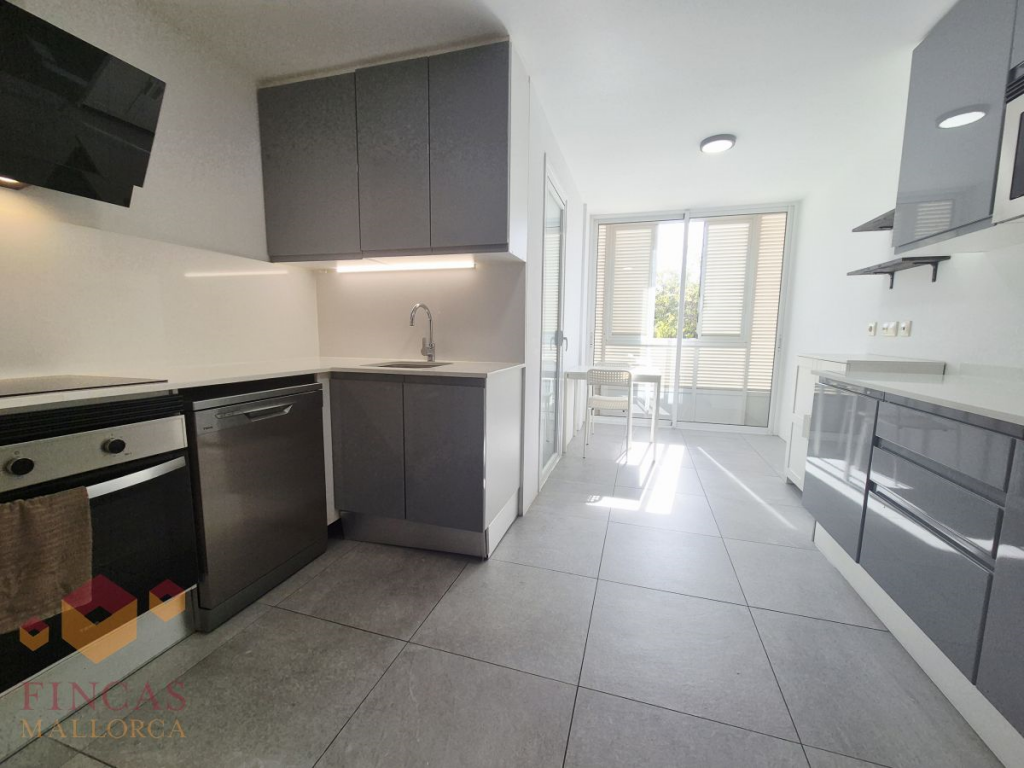 Piso de 3 habitaciones en urbanización residencial cerrada en Son Gual, con piscinas comunitarias, aparcamientos, jardines y pistas deportivas. Vivienda situada en 1ª planta, totalmente amueblada y equipada, con terraza orientada al sureste y vistas sobre zona verde y piscina. Incluye plaza de garaje en sótano con acceso directo al edificio.