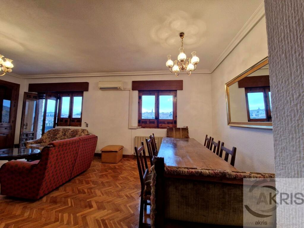 Con 229 m虏 de elegancia y amplitud, este piso en la 煤ltima planta del edificio ofrece un entorno luminoso, espacioso y lleno de car谩cter. Su gran terraza privada es el aut茅ntico coraz贸n de la vivienda: un mirador excepcional desde el que disfrutar de las impresionantes vistas al skyline toledano, perfecto para relajarse o compartir veladas inolvidables al aire libre.