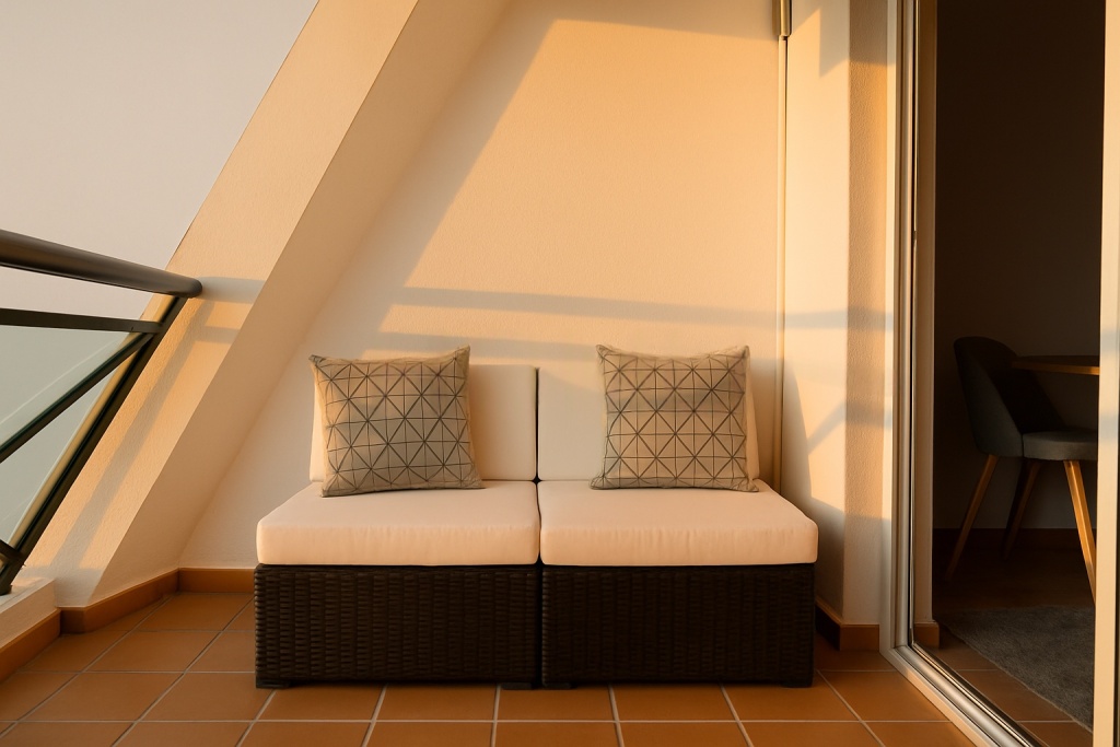 Dispone de un luminoso salón y una amplia terraza desde la que se disfrutan impresionantes vistas al mar y a la montaña, creando un ambiente perfecto tanto para el descanso como para el disfrute al aire libre.