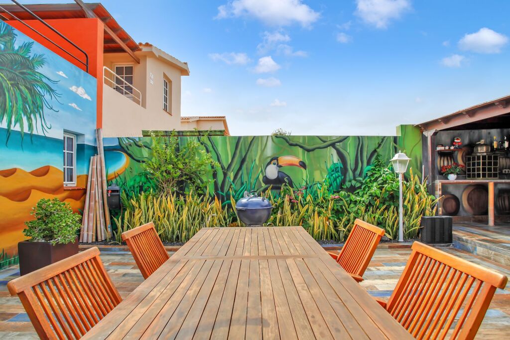 El patio cubierto, diseñado con gusto y atención al detalle, es un espacio versátil para disfrutar durante todo el año. Ideal para comidas al aire libre, momentos de descanso o reuniones entre amigos, cuenta además con una zona de barbacoa de alta calidad.
