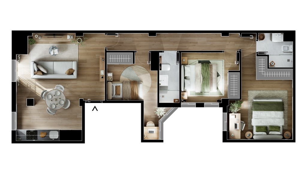 Las imágenes renders son simulaciones hiperrealistas del proyecto que pueden sufrir modificaciones motivadas por exigencias técnicas o administrativas.