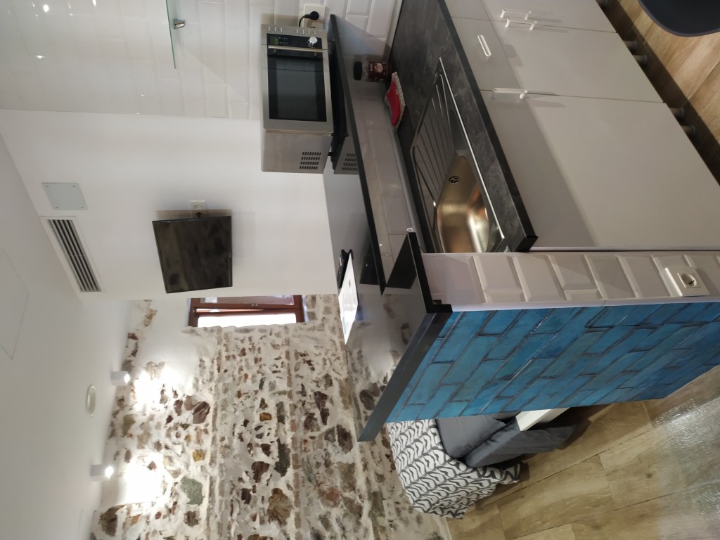 Cocina totalmente equipada con electrodomésticos, frigorífico americano, encimeras de granito.