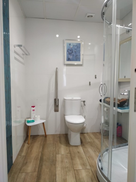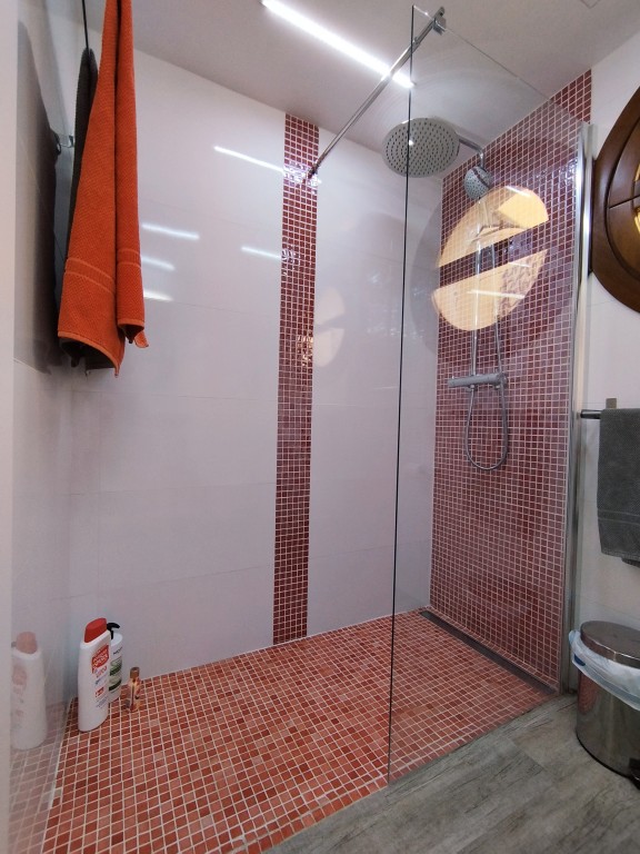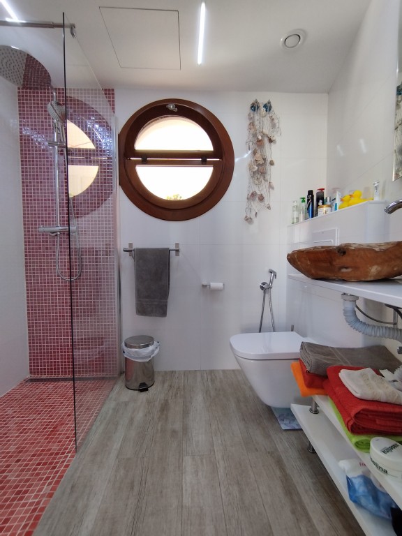Los baños en primera y segunda planta tienen ducha de obra a ras de suelo. Inodoros incl en el altillo suspendidos. Además ventanas al exterior.