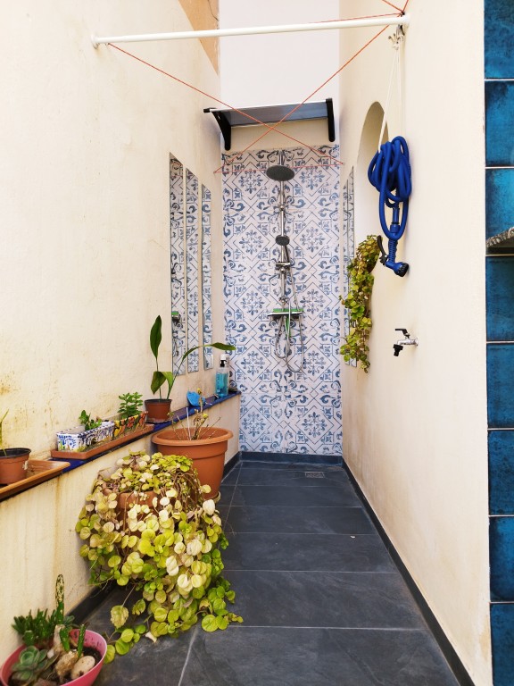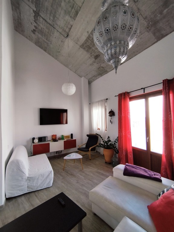 Desde la terraza tiene vistas a Gibralfaro y la catedral.En la planta baja y la primera planta se ha mantenido el muro antiguo de la casa.