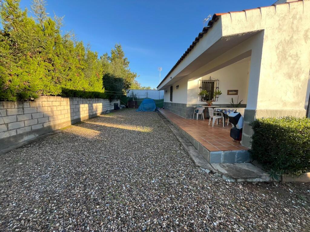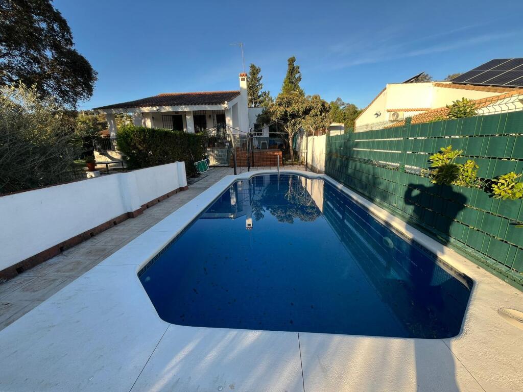 Precioso chalet en Las Pajanosas, dentro de La Dehesa de La Finca de Toros Bravos de Concha Soto, a tan sólo 25Km de Sevilla.Una oportunidad que no puede dejar escapar.....paz, tranquilidad, magníficas vistas......Situada en una parcela de 959m2 se encuentra esta maravillosa vivienda de estilo rústico, de una sóla planta, cómoda y acogedora.La vivienda dispone de un gran jardín con piscina, terraza y zona de descanso con magníficas vistas sobre la Dehesa.Un gran porche nos abre paso a esta fantástica casa. Al entrar tenemos un gran salón con chimenea, cómodo y confortable.La cocina está abierta al salón y se encuentra amueblada con muebles de mampostería, cómoda y práctica.La propiedad cuenta con dos amplios dormitorios exteriores con armarios empotrados y dos baños con placas de ducha.En el jardín hay un cuarto para herramientas, depuradora, zona de barbacoa y amplia zona para aparcar varios vehículos con puerta automática.Las ventanas son de aluminio color verde carruaje con rejas, las puertas de madera y el suelo de barro. Cuenta con dos splits de aire acondicionado en salón.Exterior y muy luminosa, lista para habitar, y muy bien situada, a unos 300m del pueblo. No deje pasar esta oportunidad!!!Informamos a nuestros clientes compradores que el precio de venta no incluye lo siguiente: Honorarios de la agencia inmobiliaria, Impuestos (I.T.P., I.V.A. o A.J.D., en su caso) ni otros gastos de la compraventa (gastos de Registro de la Propiedad, Notaría, Gestoría ni de posible Financiación). Documento F.I.S. a disposición del consumidor según Decreto 218/2005 Junta de Andalucía.