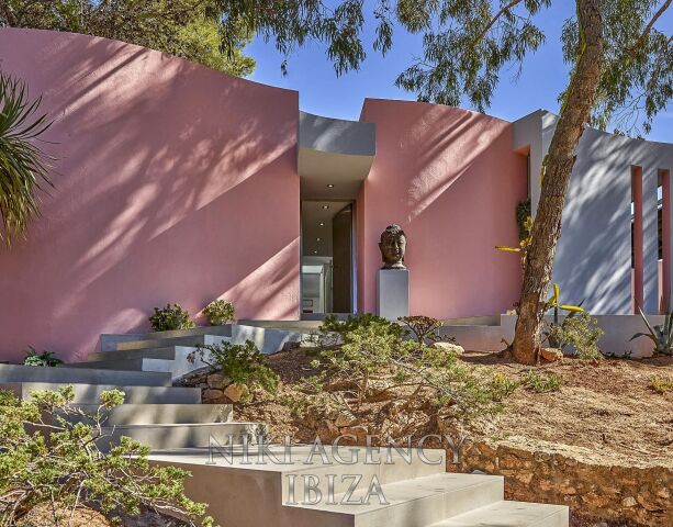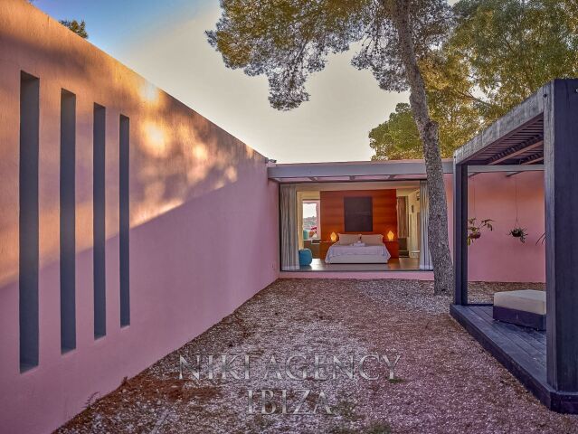Esta espectacular villa se encuentra en la codiciada costa oeste de Ibiza, muy cerca de Cala d’Hort y Cala Vadella. Situada en un entorno privado y tranquilo, rodeada de pinos mediterráneos, la propiedad ofrece impresionantes vistas al mar y a las puestas de sol más emblemáticas de la isla.