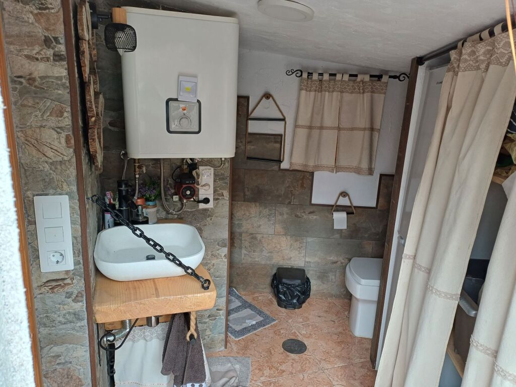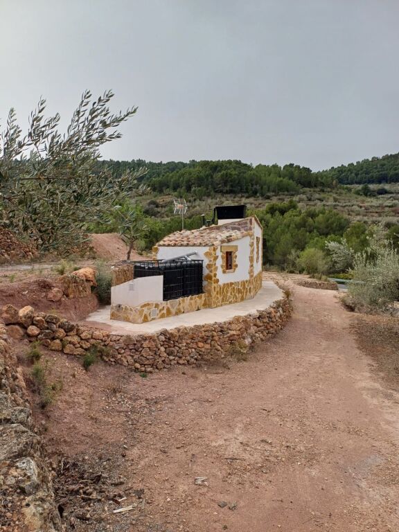 La caseta, de 30 metros cuadrados, con una marquesina en su parte delantera, dispone de sofá cama, cuarto de baño con ducha, televisión con antena en la que se sintonizan todos los canales, dos depósitos de 1.000 litros cada uno que recogen el agua de lluvia (bomba) y luz de batería, chimenea de leña, calentador, cocina con horno, encimera y campana extractora todo eléctrico.