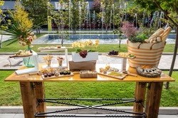 Terraza exterior: Capacidad para 50 sillas, rodeada de zonas ajardinadas