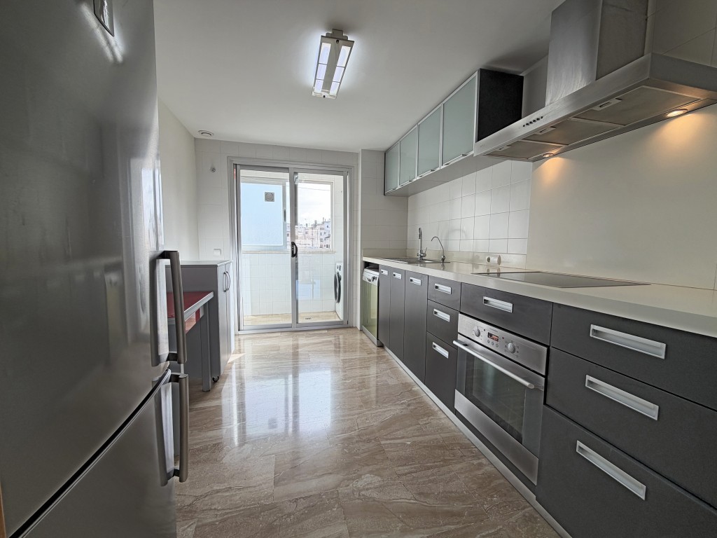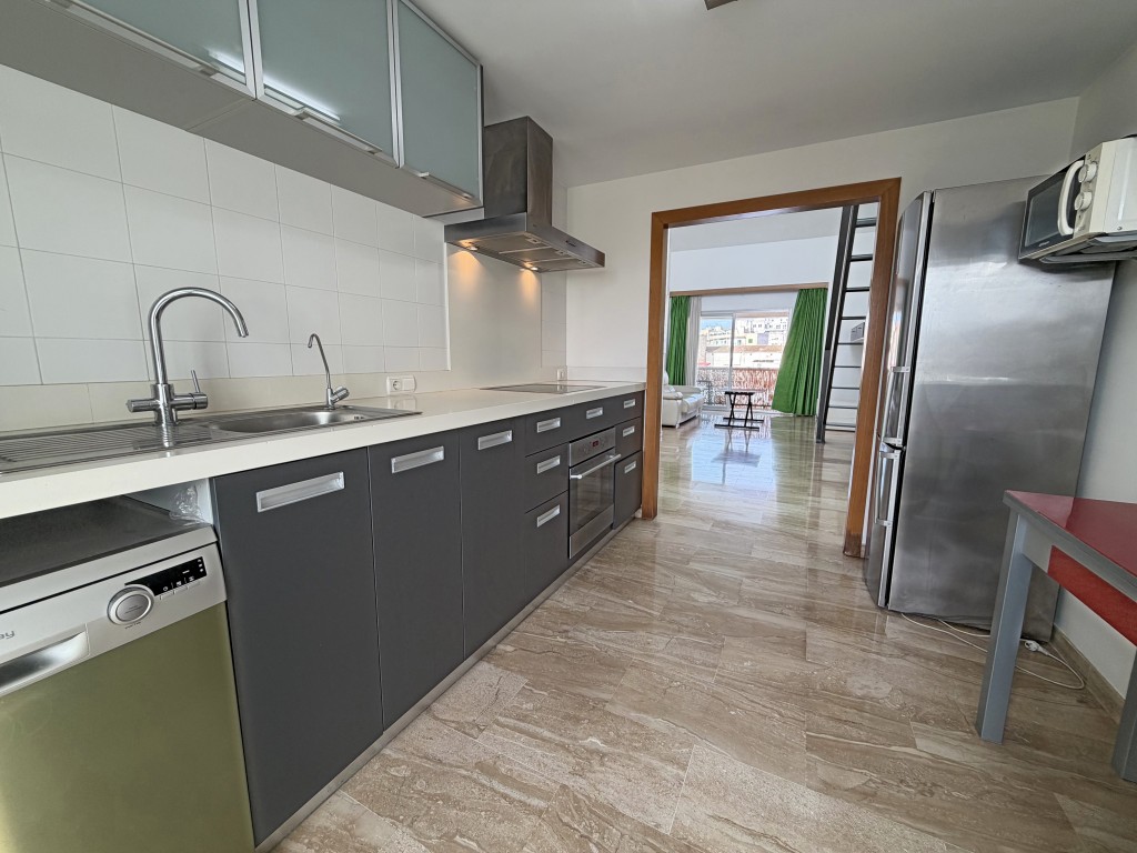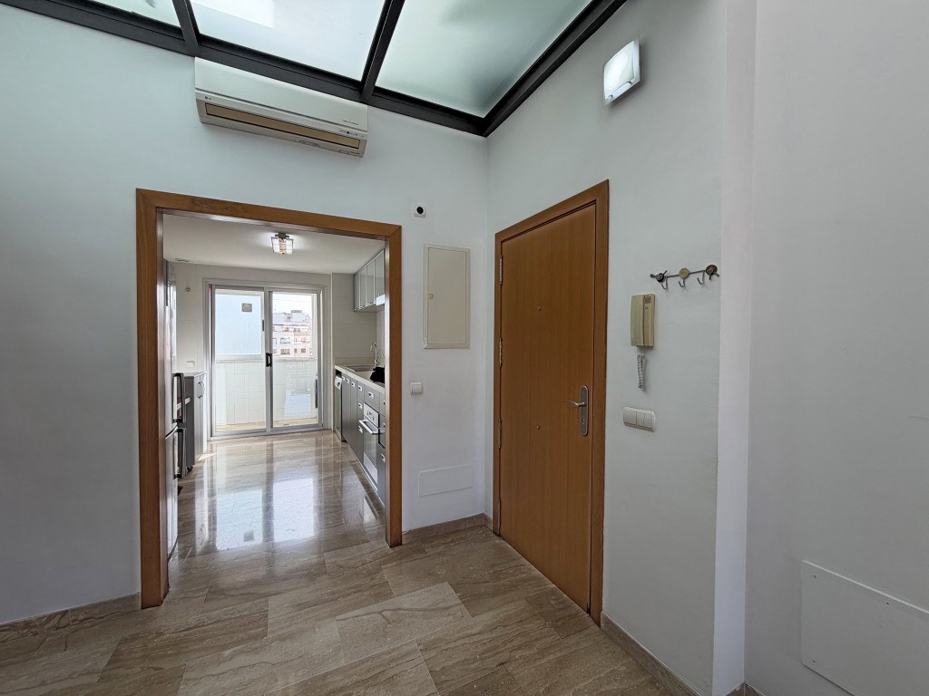 PARE BMÉ. POU / 31 DESEMBRE / BLANQUERNA, Ático / dúplex amueblado, 5º y 6º con ascensor, dos pisos por planta. Finca muy tranquila. 16 años antigüedad. Muy luminoso. Amueblado y equipado. 2 habitaciones dobles con armarios empotrados, 2 baños (1 con bañera otro con plato ducha), cocina amueblada y equipada (incluso lavavajillas), sistema de ósmosis para agua de consumo, salón-comedor muy luminoso de 27m2, coladuría (lavadora incluida), balcón con vistas a la calle y ciudad. Solárium superior de 50m2 con dos orientaciones (este/oeste) y con vistas a la ciudad (incluso Castillo Bellver). Barbacoa (portátil). 3 splits de aire acondicionado con bomba de calor, climalit, persianas enrrollables, suelos de mármol, puerta blindada, carpintería interior madera maciza.