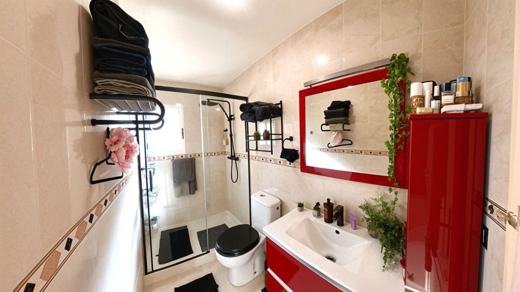 La propiedad destaca por su alta eficiencia energética con placas solares que reducen el consumo eléctrico, una ventaja buscada por clientes de real estate en Torrevieja. El exterior cuenta con cocina de verano, barbacoa, zona de relax y mobiliario para cenas al aire libre, creando el ambiente perfecto para reuniones familiares y eventos sociales. El parking privado dentro de la parcela aporta máxima comodidad, un valor añadido en la oferta de casas en venta Torrevieja.