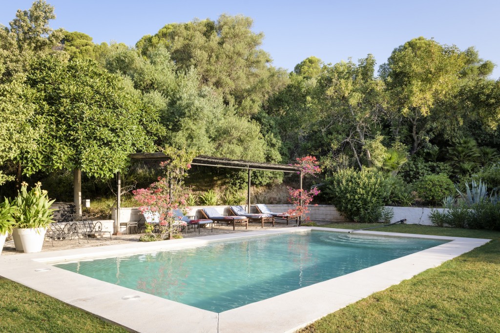 En el exterior, exuberantes jardines mediterráneos y árboles maduros rodean la finca, creando una atmósfera serena de belleza natural. En el corazón del terreno, una reluciente piscina ocupa el centro, enmarcada por terrazas bañadas por el sol y una pérgola sombreada, el lugar perfecto para las largas tardes de verano. Desde todos los ángulos, se despliegan vistas panorámicas del paisaje, invitando al descanso y a una profunda conexión con el campo andaluz.